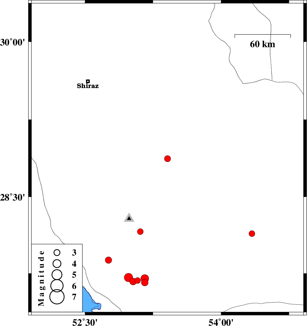 | 2019/11/05 | 01:17:55.8 | 04:47:55.8 | 28.14 | 54.34 | 14 | ML:2.9 | Fars Province, 51 km North of Lar |