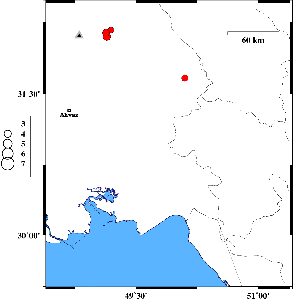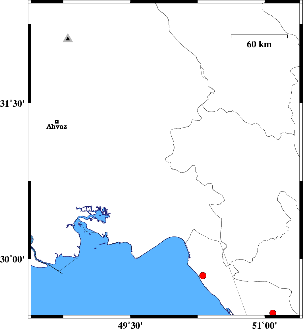 | 2019/11/23 | 13:45:32.9 | 17:15:32.9 | 30.99 | 49.88 | 12 | ML:3.9 | Khoozestan Province, 30 km North-East of Omidiyeh | ||