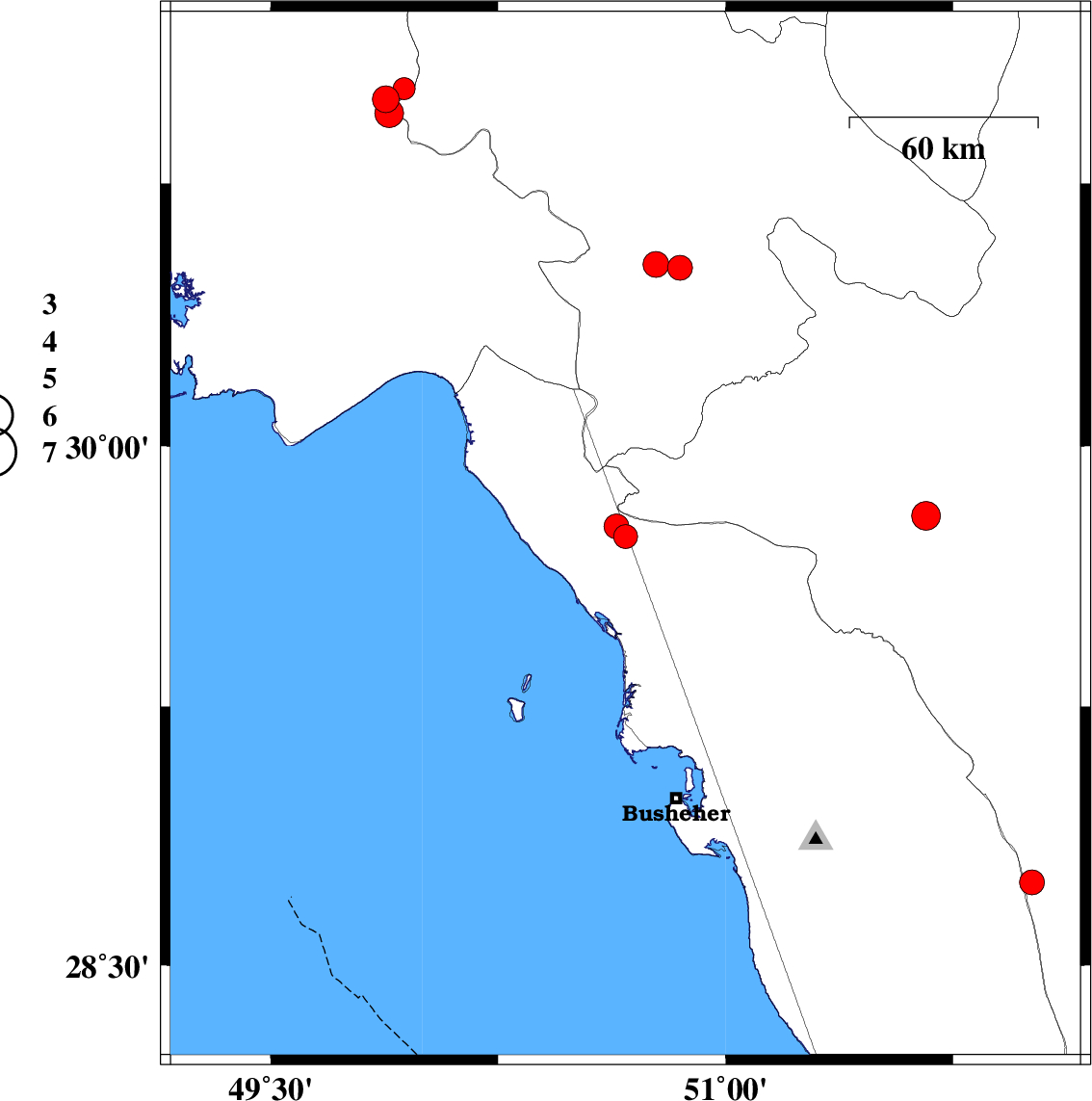 | 2019/11/25 | 12:30:52.1 | 16:00:52.1 | 29.77 | 50.64 | 14 | ML:3.6 | Bushehr Province, 25 km North-East of Bandar-e genaveh | ||