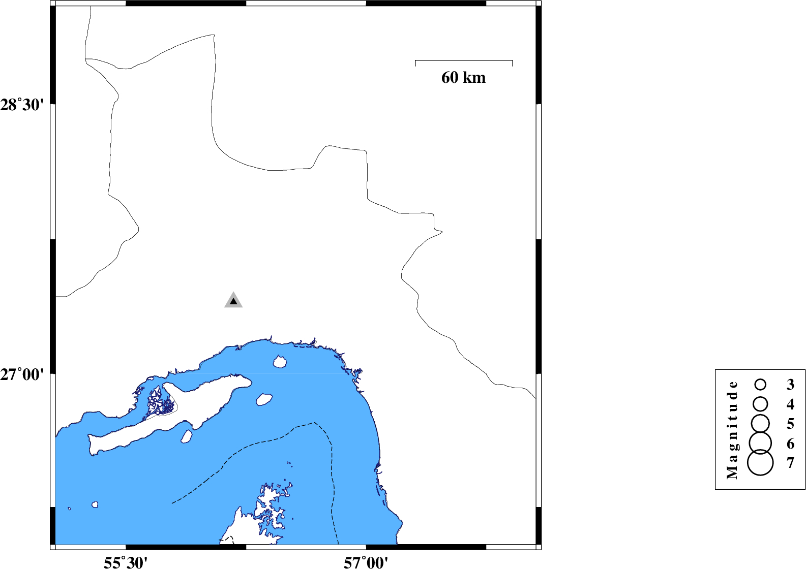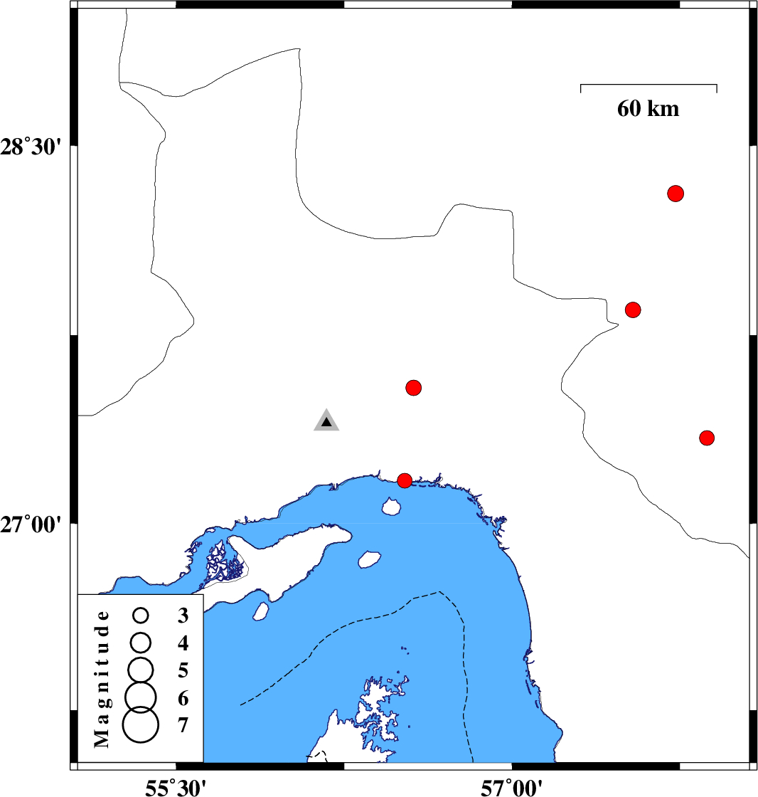 | 2019/11/29 | 21:23:06.4 | 00:53:06.4 | 27.54 | 56.56 | 10 | ML:3.1 | Hormozgan Province, 48 km North-East of Bandar-e abbas | ||