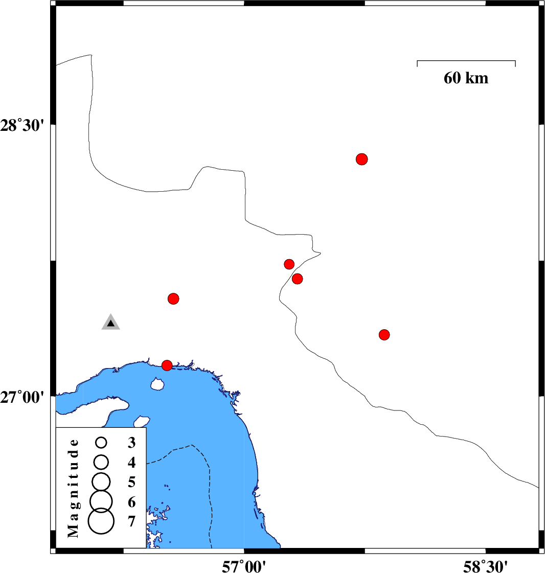 | 2019/11/29 | 21:23:06.4 | 00:53:06.4 | 27.54 | 56.56 | 10 | ML:3.1 | Hormozgan Province, 48 km North-East of Bandar-e abbas | ||