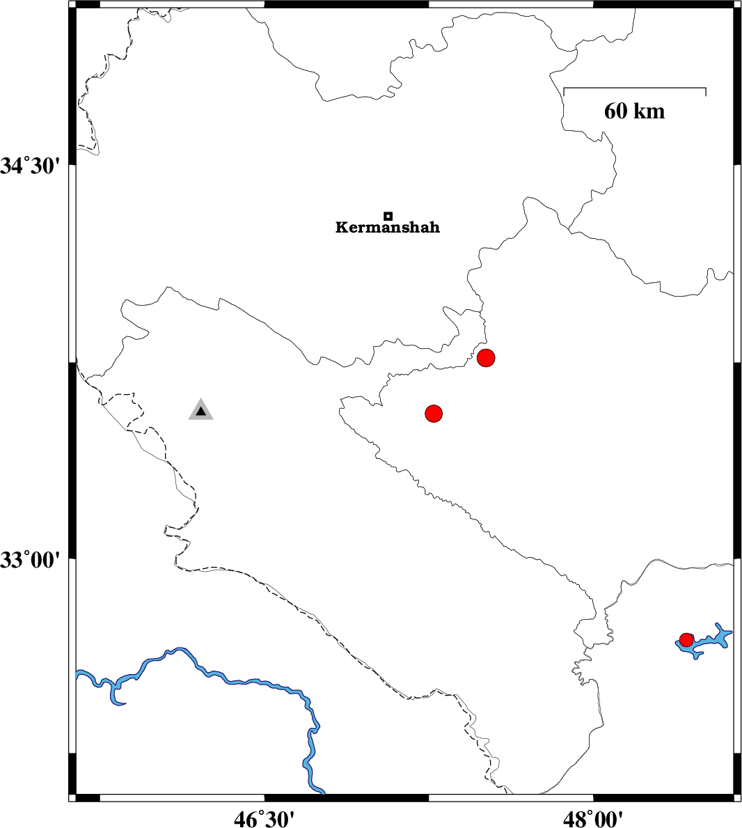 | 2019/11/23 | 15:14:07.1 | 18:44:07.1 | 33.55 | 48.26 | 10 | ML:2.5 | Lorestan Province, 12 km -West of Khorramabad | ||