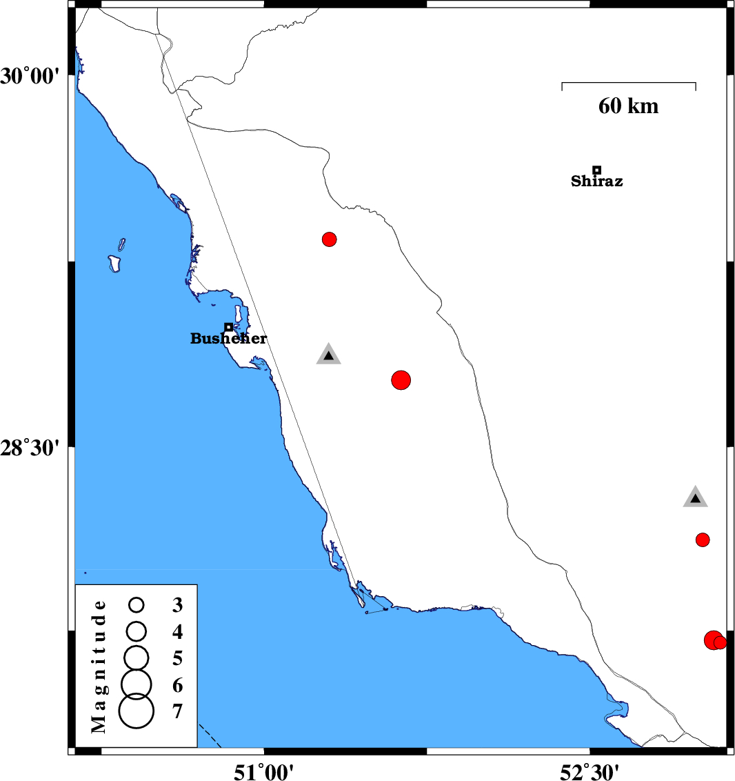 | 2019/12/03 | 14:43:07.4 | 18:13:07.4 | 28.77 | 51.63 | 15 | ML:4 | Bushehr Province, 29 km North-East of Khormog | ||