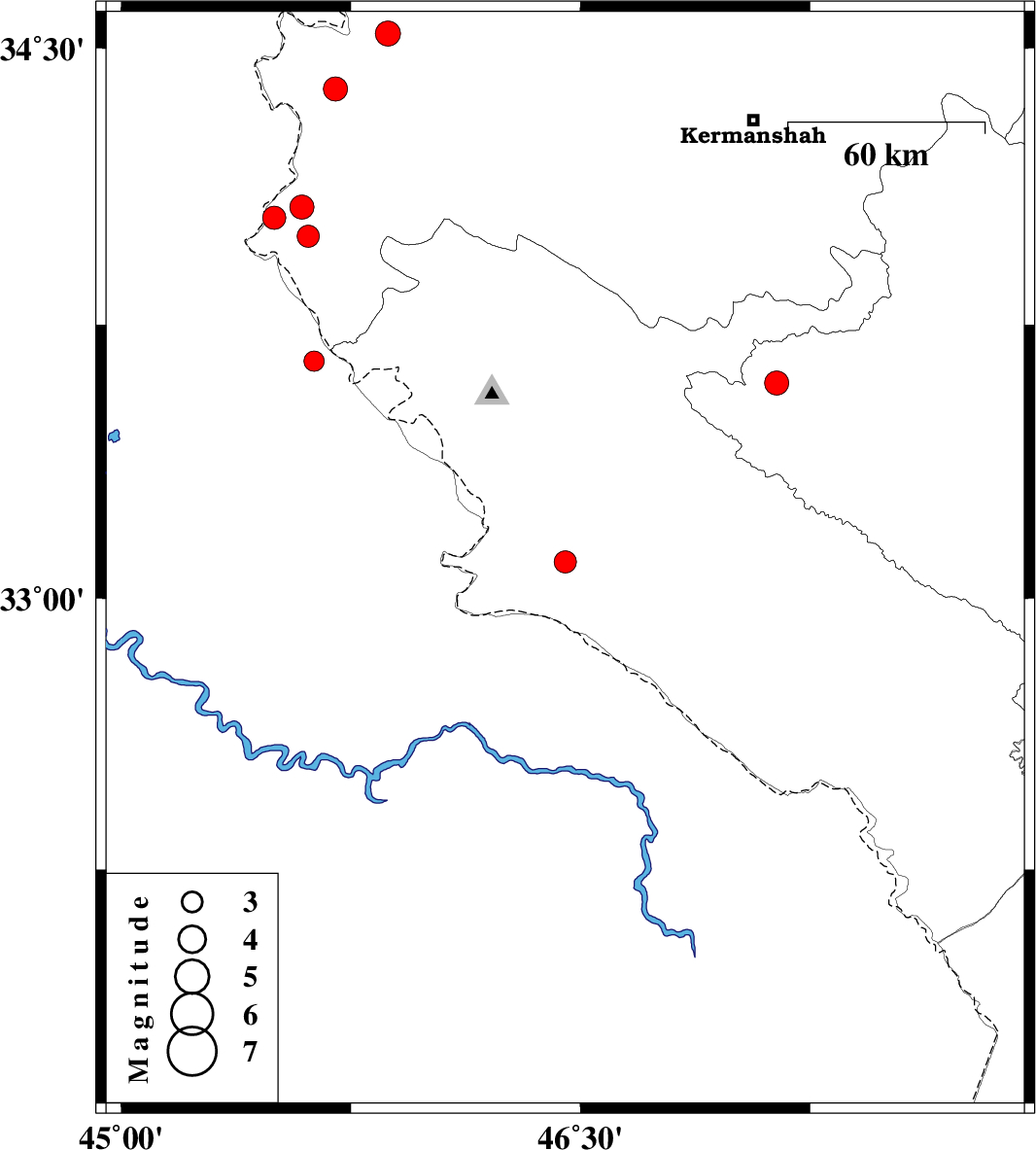 | 2019/11/27 | 07:18:55.7 | 10:48:55.7 | 34.04 | 45.5 | 10 | ML:3.4 | Kermanshah Province, 40 km South-West of Gilan-E-Gharb | ||