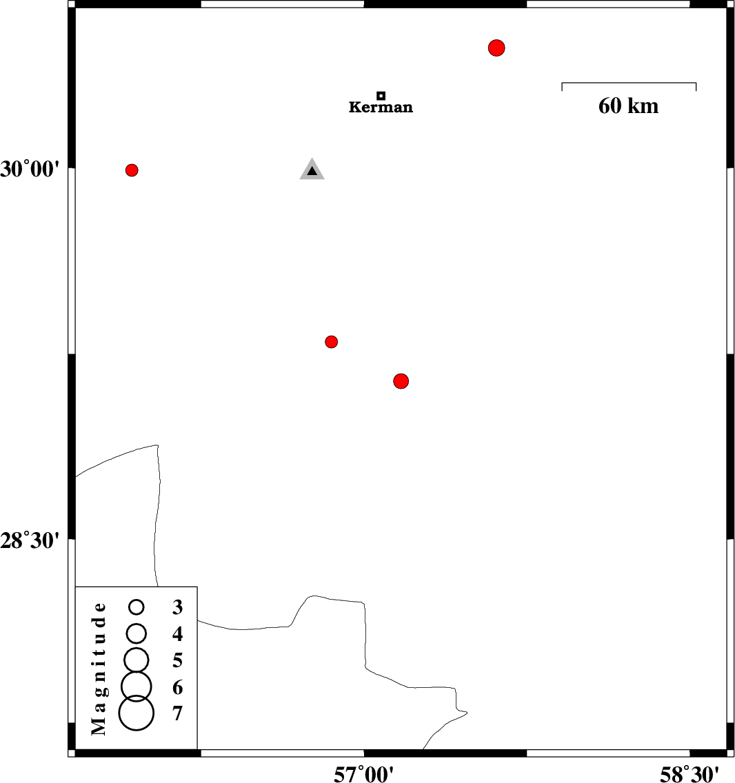 | 2019/12/06 | 19:13:36.5 | 22:43:36.5 | 30.48 | 57.61 | 10 | ML:3.4 | Kerman Province, 55 km North-East of Kerman |