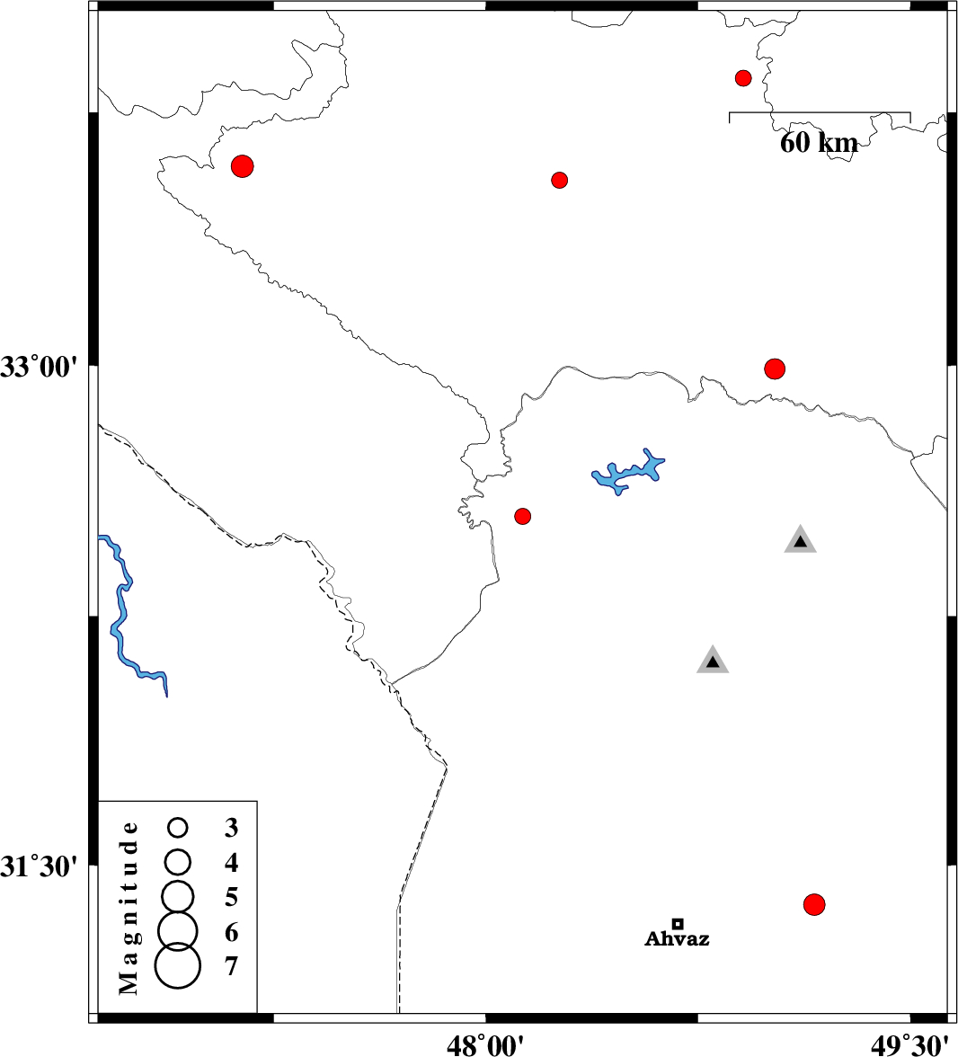 | 2019/11/26 | 16:46:31.6 | 20:16:31.6 | 33.85 | 48.91 | 10 | ML:2.5 | Lorestan Province, 15 km -East of Borujerd | ||