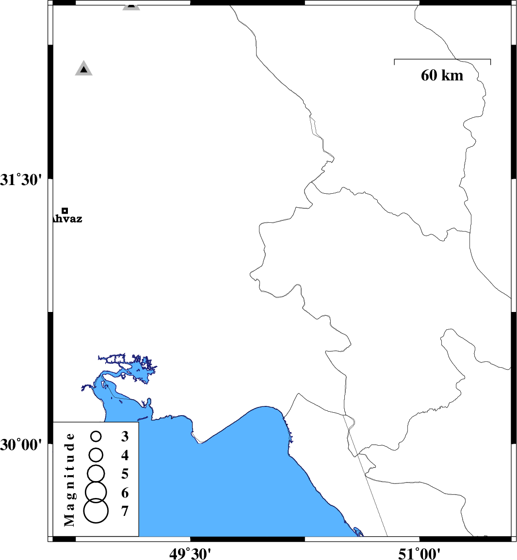 | 2019/12/18 | 23:37:37.1 | 03:07:37.1 | 30.97 | 50.1 | 10 | ML:3.5 | Kohkiluieh va boyerahmad Province, 44 km North-West of Behbahan |
