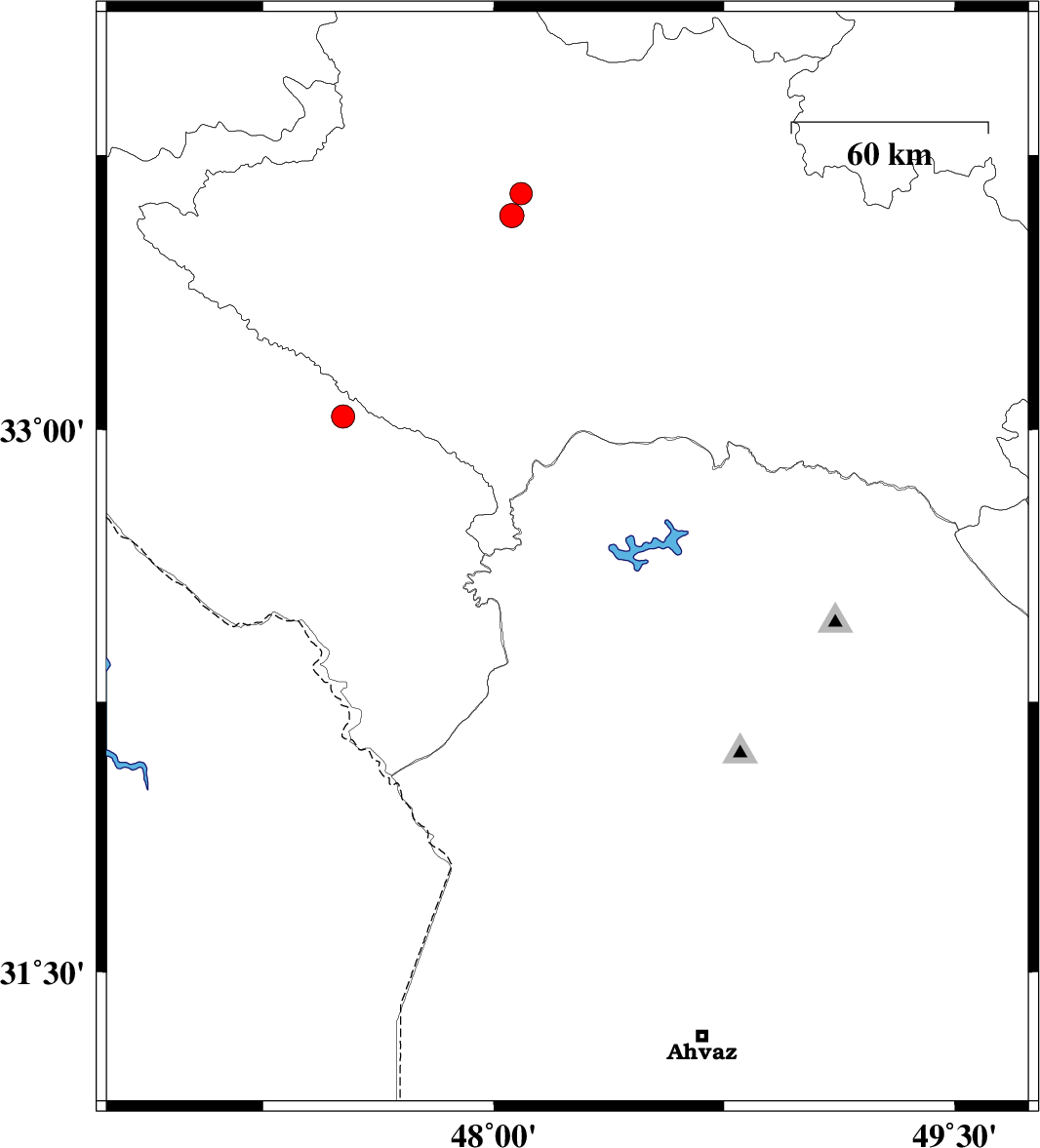 | 2019/12/15 | 15:44:20.8 | 19:14:20.8 | 32.55 | 48.13 | 14 | ML:2.6 | Khoozestan Province, 23 km -West of Andimeshk | ||