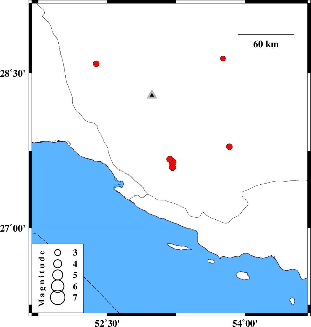 | 2019/12/22 | 04:45:35.3 | 08:15:35.3 | 27.59 | 53.21 | 17 | ML:3.2 | Fars Province, 29 km North of Lamerd | ||