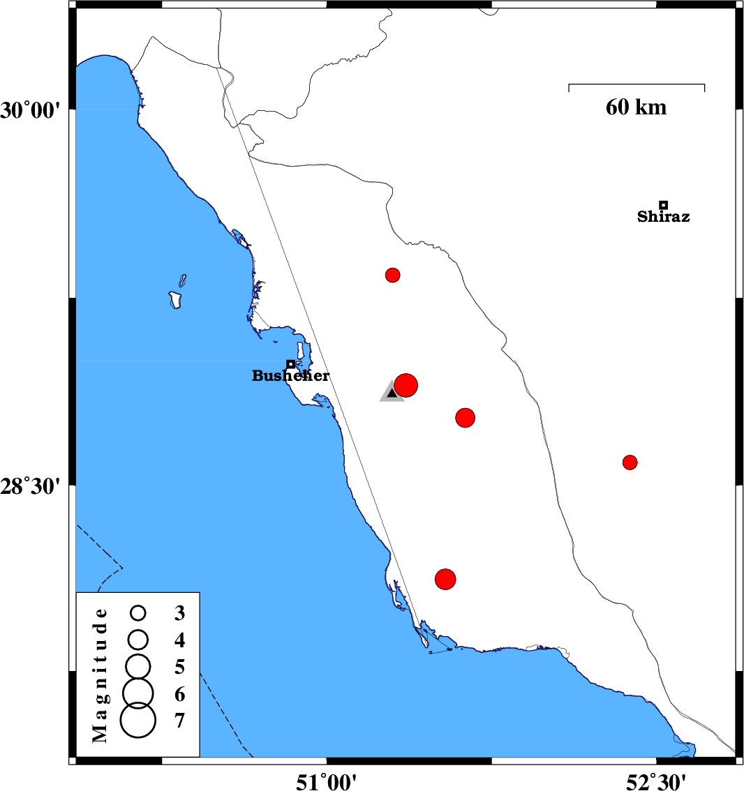 | 2019/12/03 | 14:43:07.4 | 18:13:07.4 | 28.77 | 51.63 | 15 | ML:4 | Bushehr Province, 29 km North-East of Khormog | ||