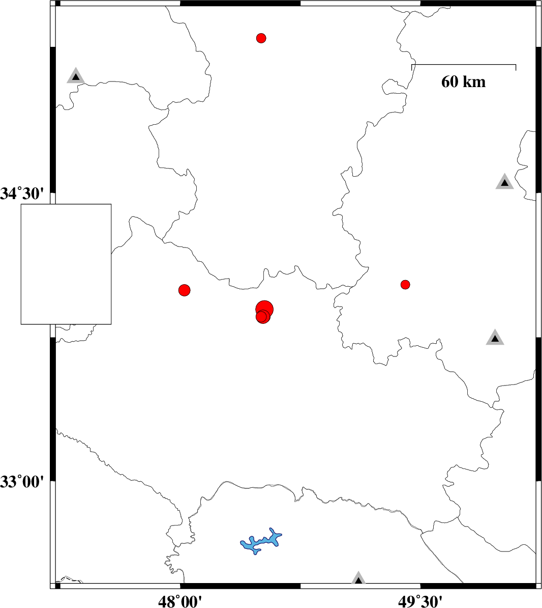| 2019/12/27 | 19:12:55.4 | 22:42:55.4 | 33.96 | 48.72 | 10 | ML:2.7 | Lorestan Province, 8 km of Borujerd | ||