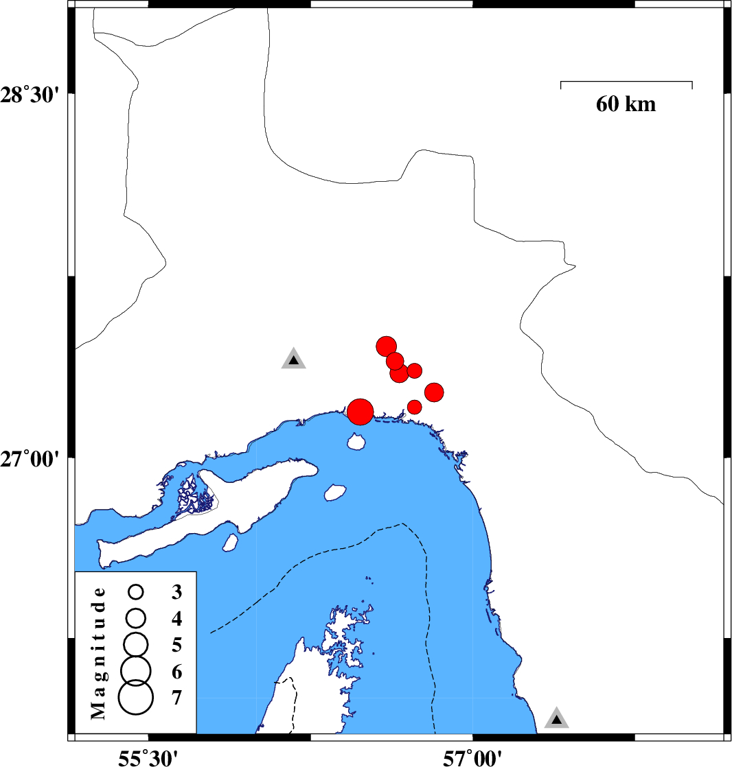 | 2019/12/30 | 13:54:39.7 | 17:24:39.7 | 27.46 | 56.6 | 10 | ML:4.3 | Hormozgan Province, 44 km North-East of Bandar-e abbas | ||