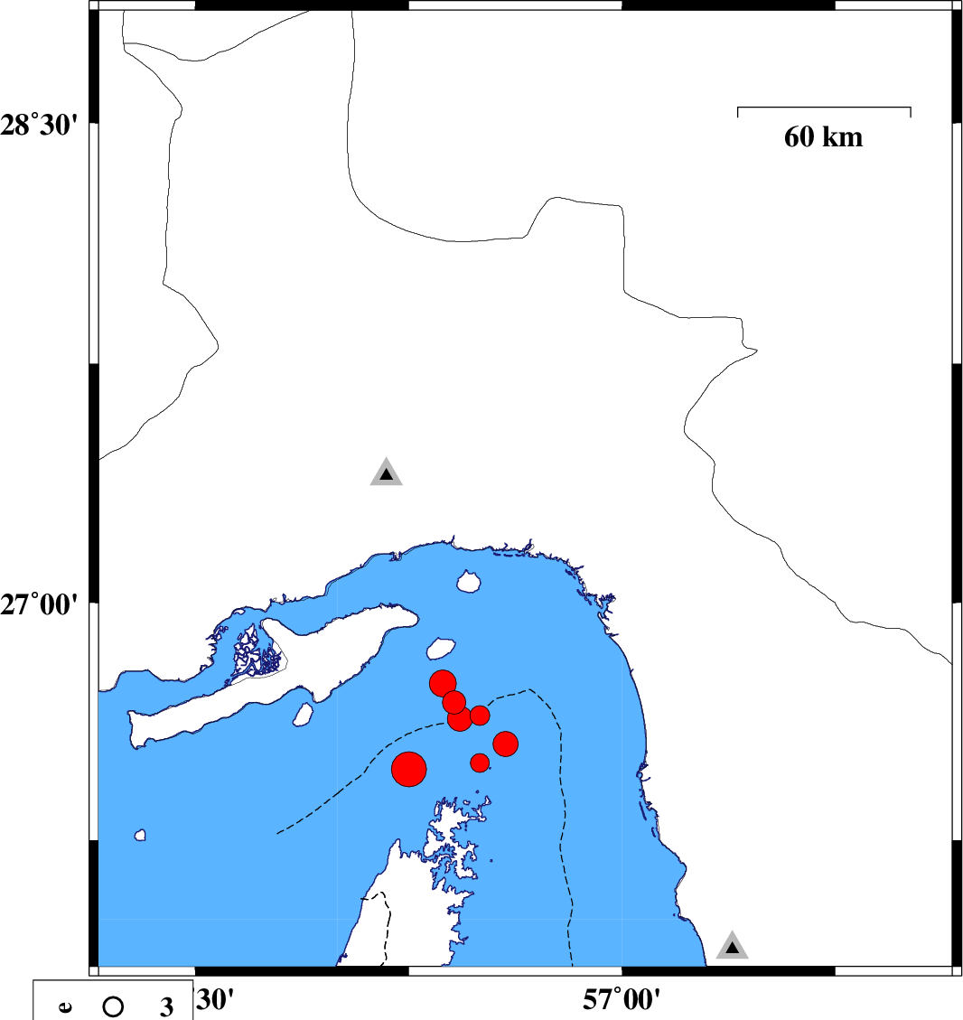 2019/12/30 20:33:59.1 00:03:59.1 27.2156.7315 ML:3 Hormozgan Province, 35 km -West of Minab