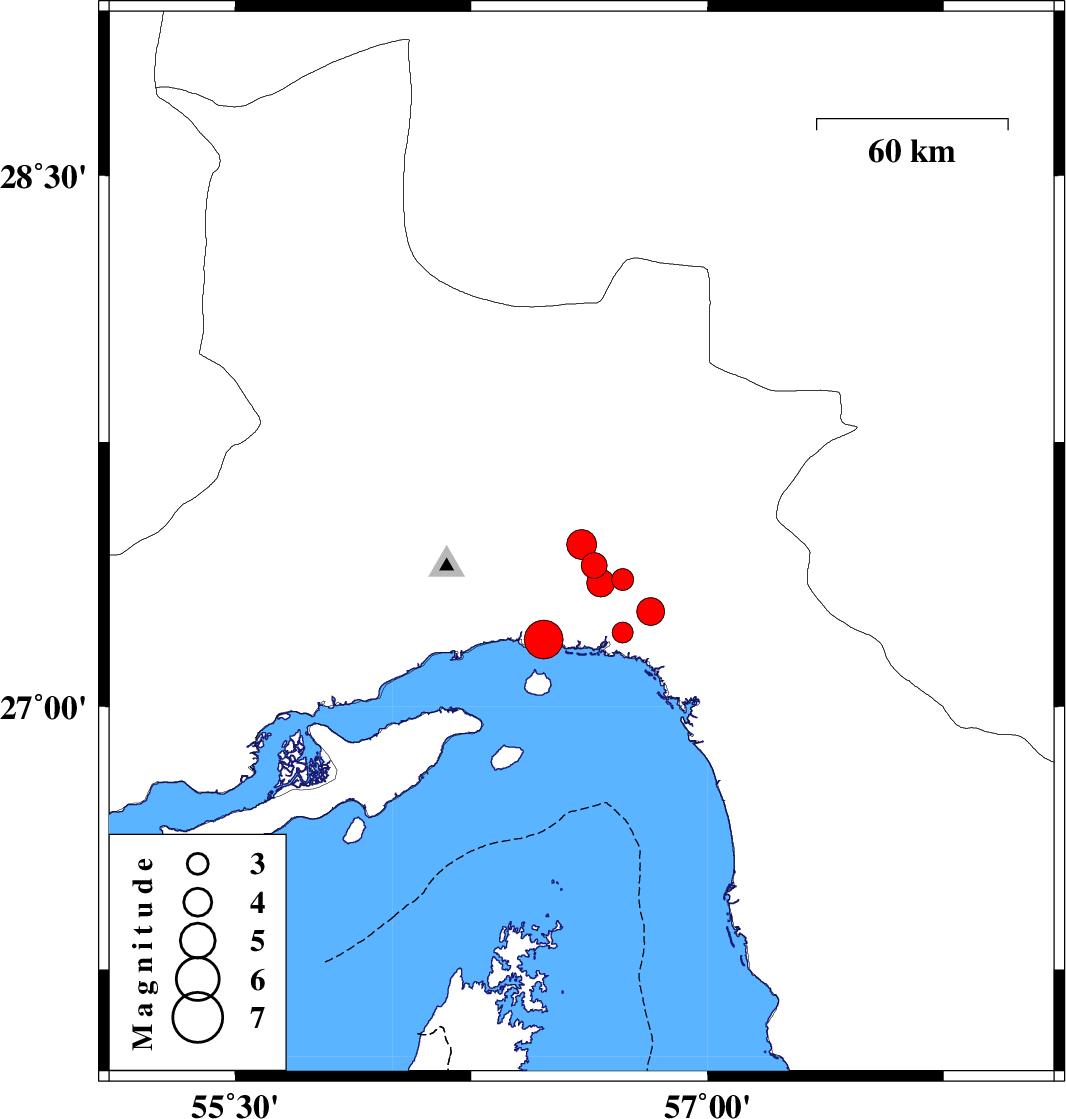 | 2019/12/30 | 13:54:39.7 | 17:24:39.7 | 27.46 | 56.6 | 10 | ML:4.3 | Hormozgan Province, 44 km North-East of Bandar-e abbas | ||