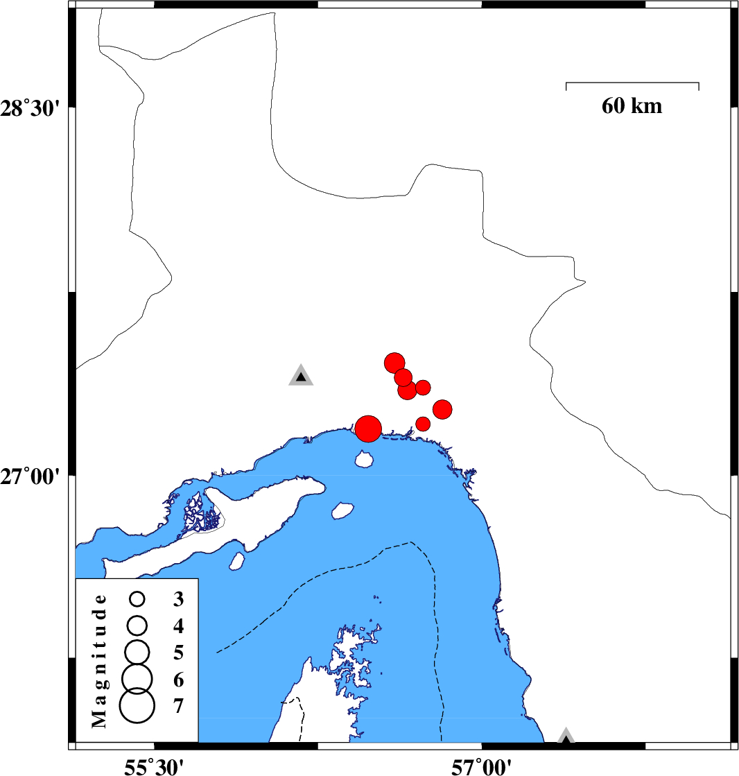 | 2019/12/30 | 13:54:39.7 | 17:24:39.7 | 27.46 | 56.6 | 10 | ML:4.3 | Hormozgan Province, 44 km North-East of Bandar-e abbas | ||