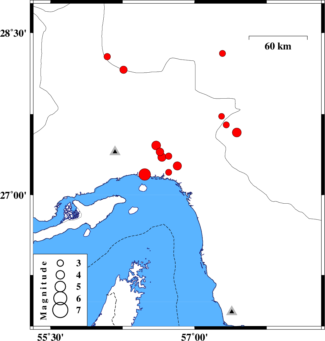 2019/12/30 20:33:59.1 00:03:59.1 27.2156.7315 ML:3 Hormozgan Province, 35 km -West of Minab
