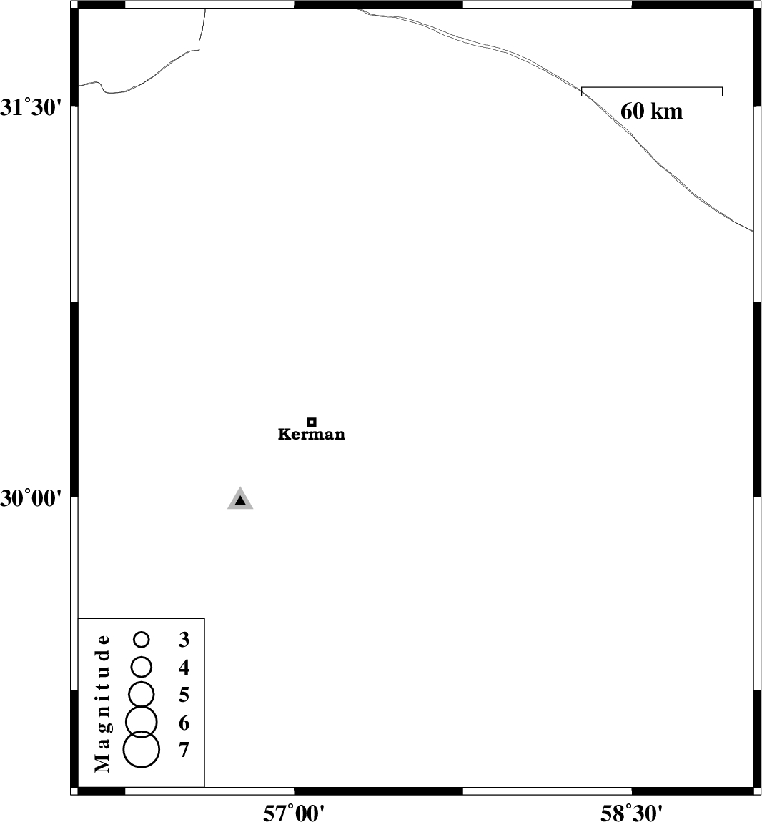 | 2019/12/30 | 22:03:03.8 | 01:33:03.8 | 30.37 | 57.54 | 14 | ML:3.1 | Kerman Province, 45 km -East of Kerman |