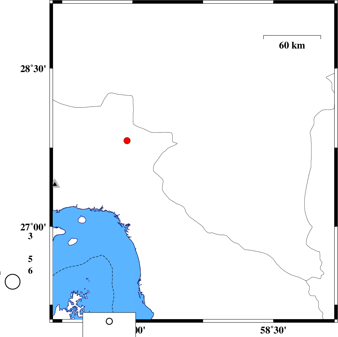 | 2019/12/30 | 20:33:59.1 | 00:03:59.1 | 27.21 | 56.73 | 15 | ML:3 | Hormozgan Province, 35 km -West of Minab | ||