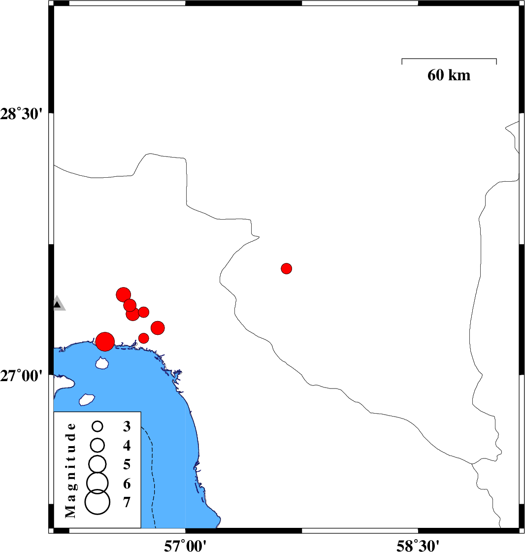 | 2019/12/30 | 13:54:39.7 | 17:24:39.7 | 27.46 | 56.6 | 10 | ML:4.3 | Hormozgan Province, 44 km North-East of Bandar-e abbas | ||