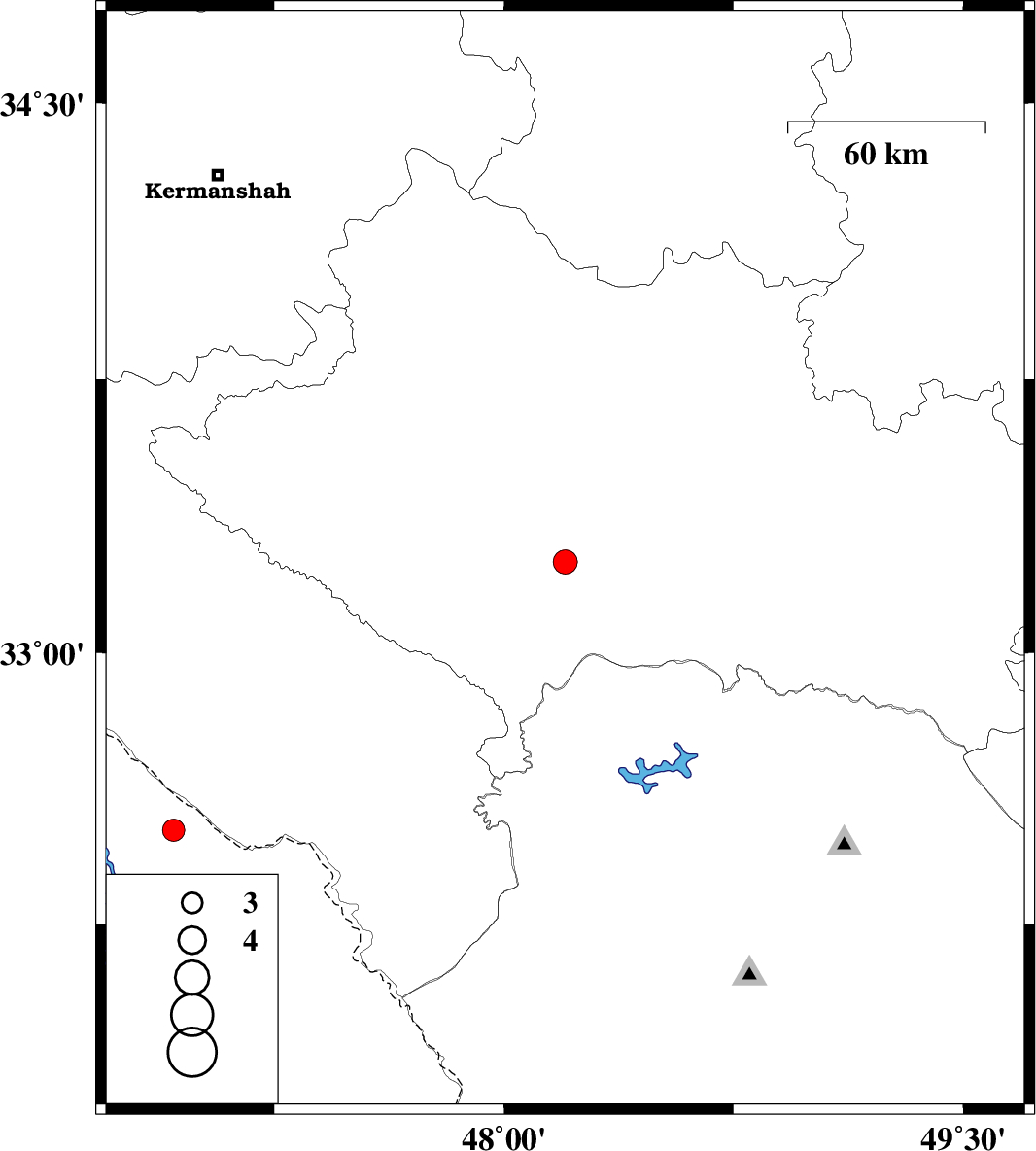 | 2020/01/06 | 11:32:44.4 | 15:02:44.4 | 33.25 | 48.2 | 10 | ML:3.5 | Lorestan Province, 30 km South-West of Khorramabad | ||