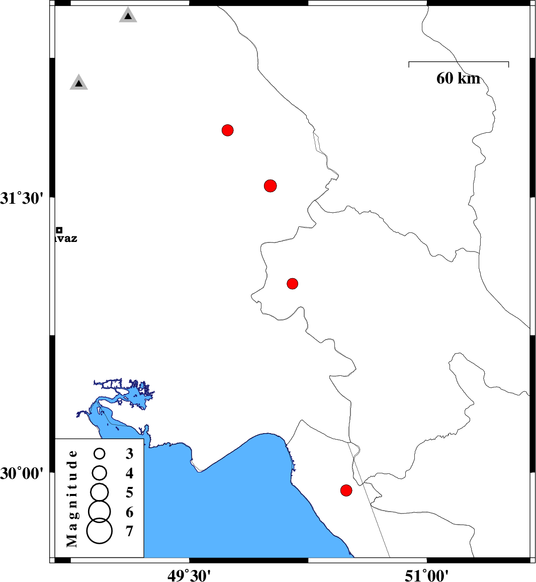 | 2020/01/10 | 10:36:59.2 | 14:06:59.2 | 31.03 | 50.15 | 10 | ML:3.1 | Kohkiluieh va boyerahmad Province, 49 km North of Behbahan | ||