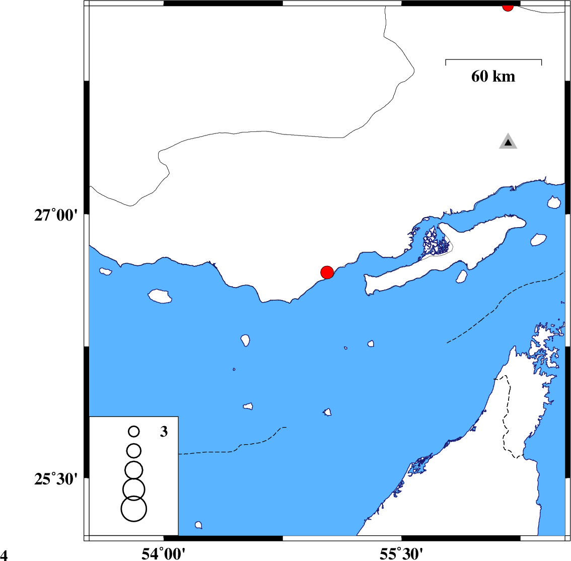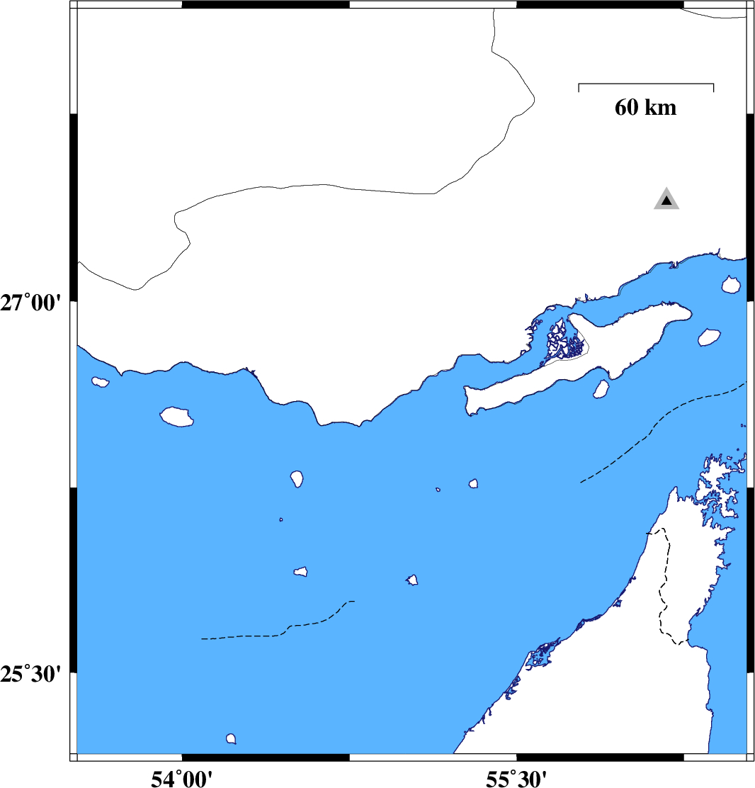 | 2020/01/15 | 14:56:17.9 | 18:26:17.9 | 26.67 | 55.03 | 12 | ML:3.6 | Hormozgan Province, 24 km North-East of Bandar-e lengeh |