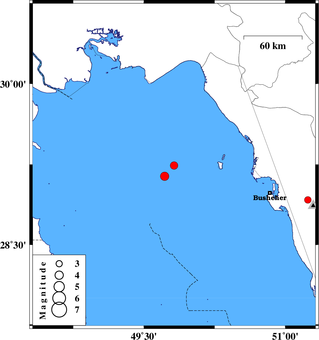 | 2020/01/20 | 07:09:06.9 | 10:39:06.9 | 29.24 | 49.82 | 14 | ML:3.6 | Persian Gulf, 77 km South-West of Bandar-e genaveh | ||