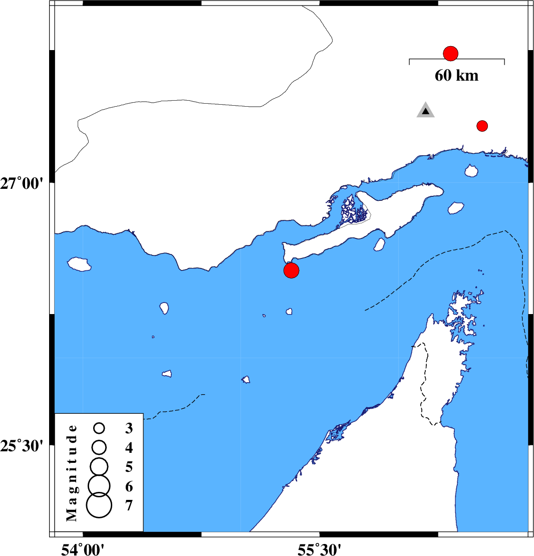 | 2020/01/24 | 18:31:24.6 | 22:01:24.6 | 26.5 | 55.32 | 14 | ML:4.4 | Persian Gulf, 47 km -East of Bandar-e lengeh | ||