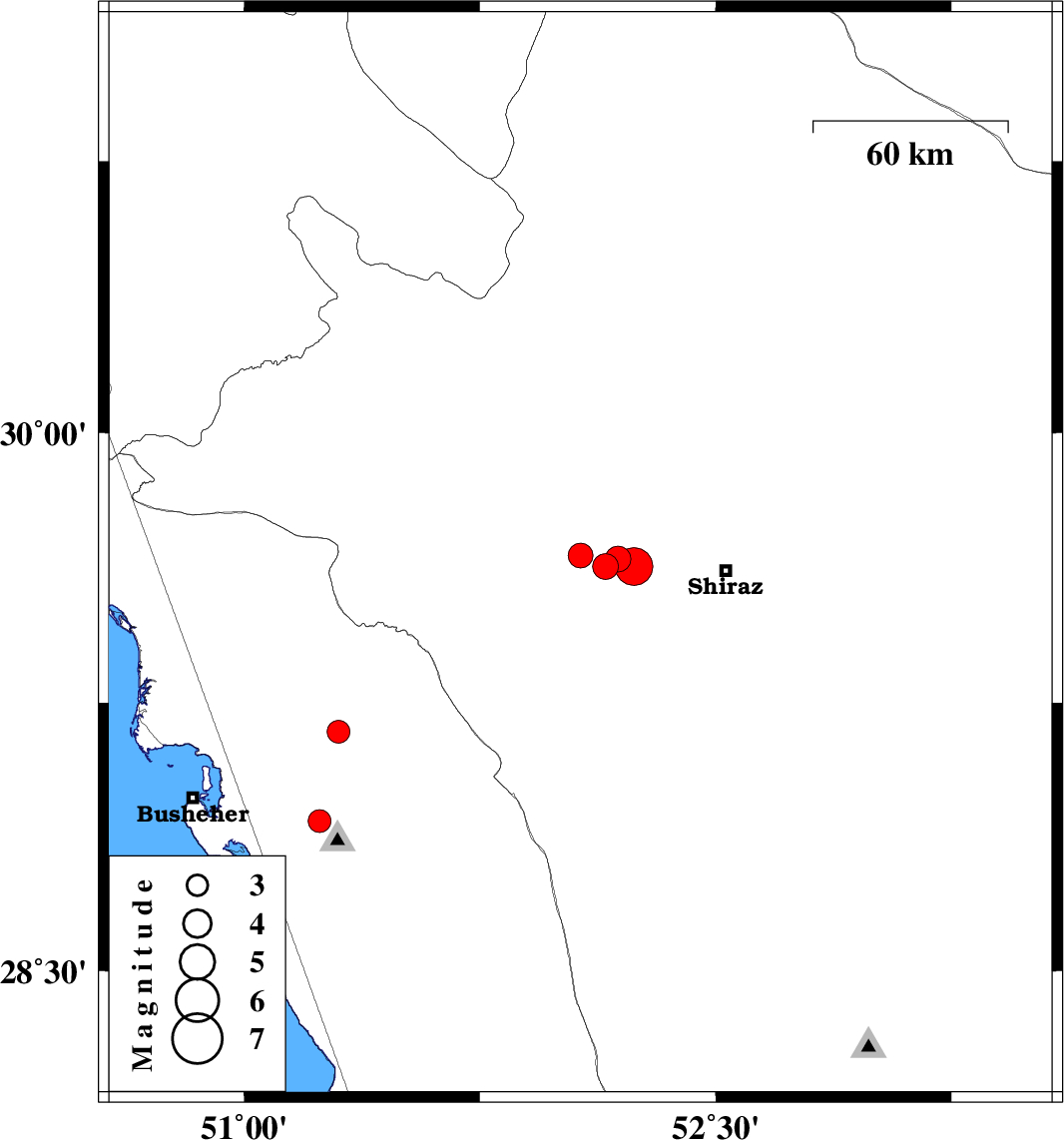 | 2020/01/27 | 14:33:08.3 | 18:03:08.3 | 29.65 | 52.19 | 10 | ML:3.6 | Fars Province, 33 km -West of Shiraz | ||