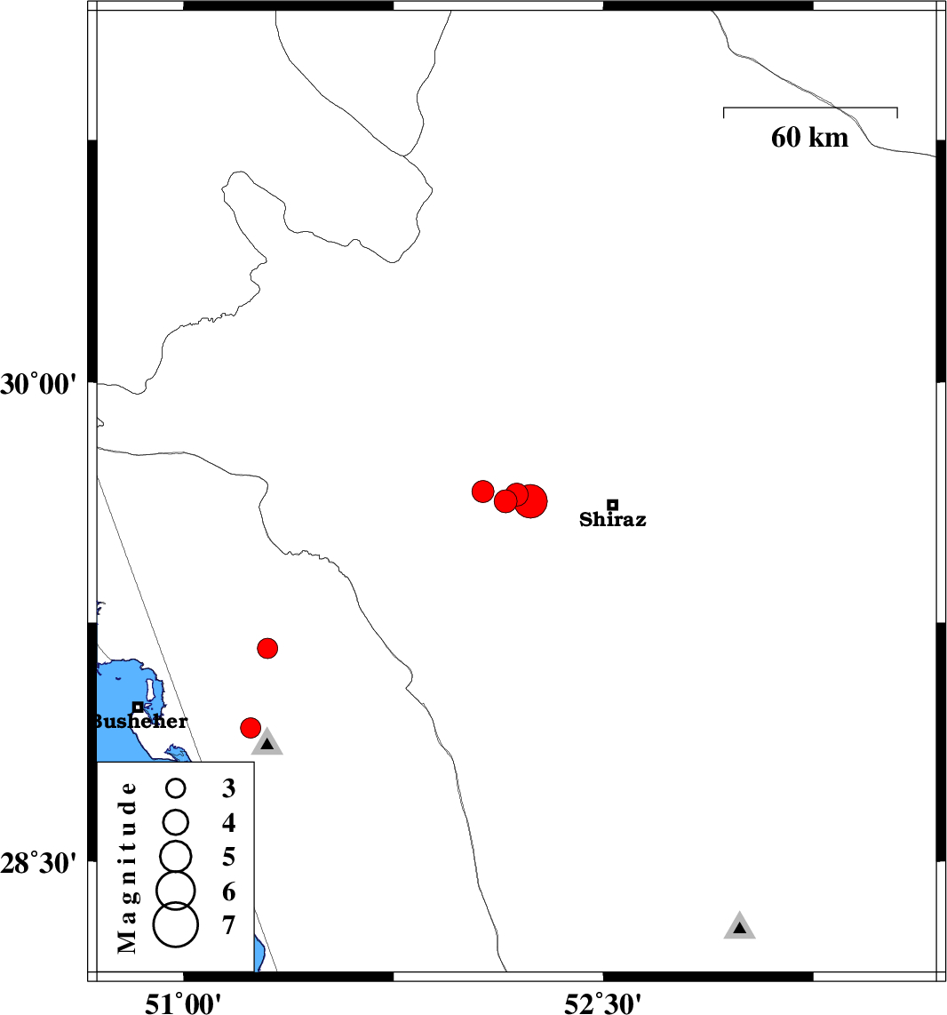 | 2020/01/27 | 14:33:08.3 | 18:03:08.3 | 29.65 | 52.19 | 10 | ML:3.6 | Fars Province, 33 km -West of Shiraz | ||