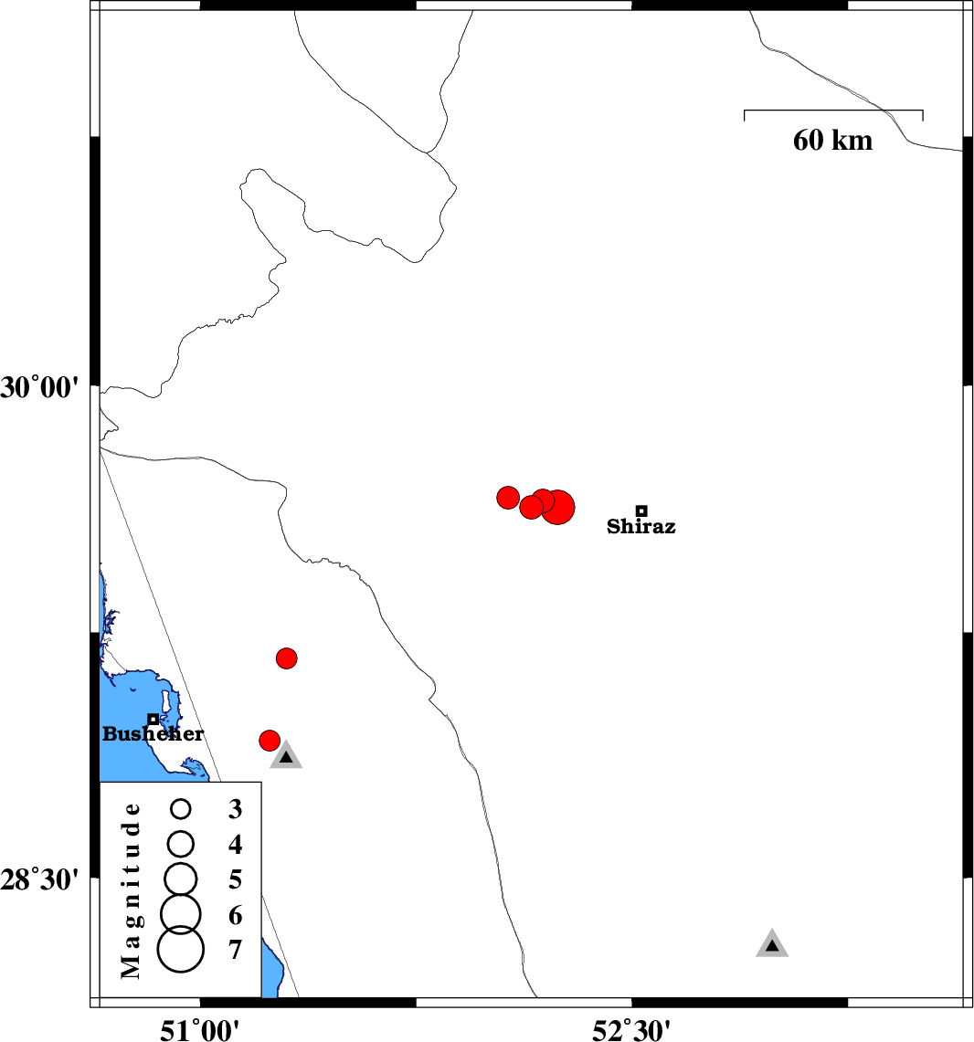 | 2020/01/27 | 14:33:08.3 | 18:03:08.3 | 29.65 | 52.19 | 10 | ML:3.6 | Fars Province, 33 km -West of Shiraz | ||