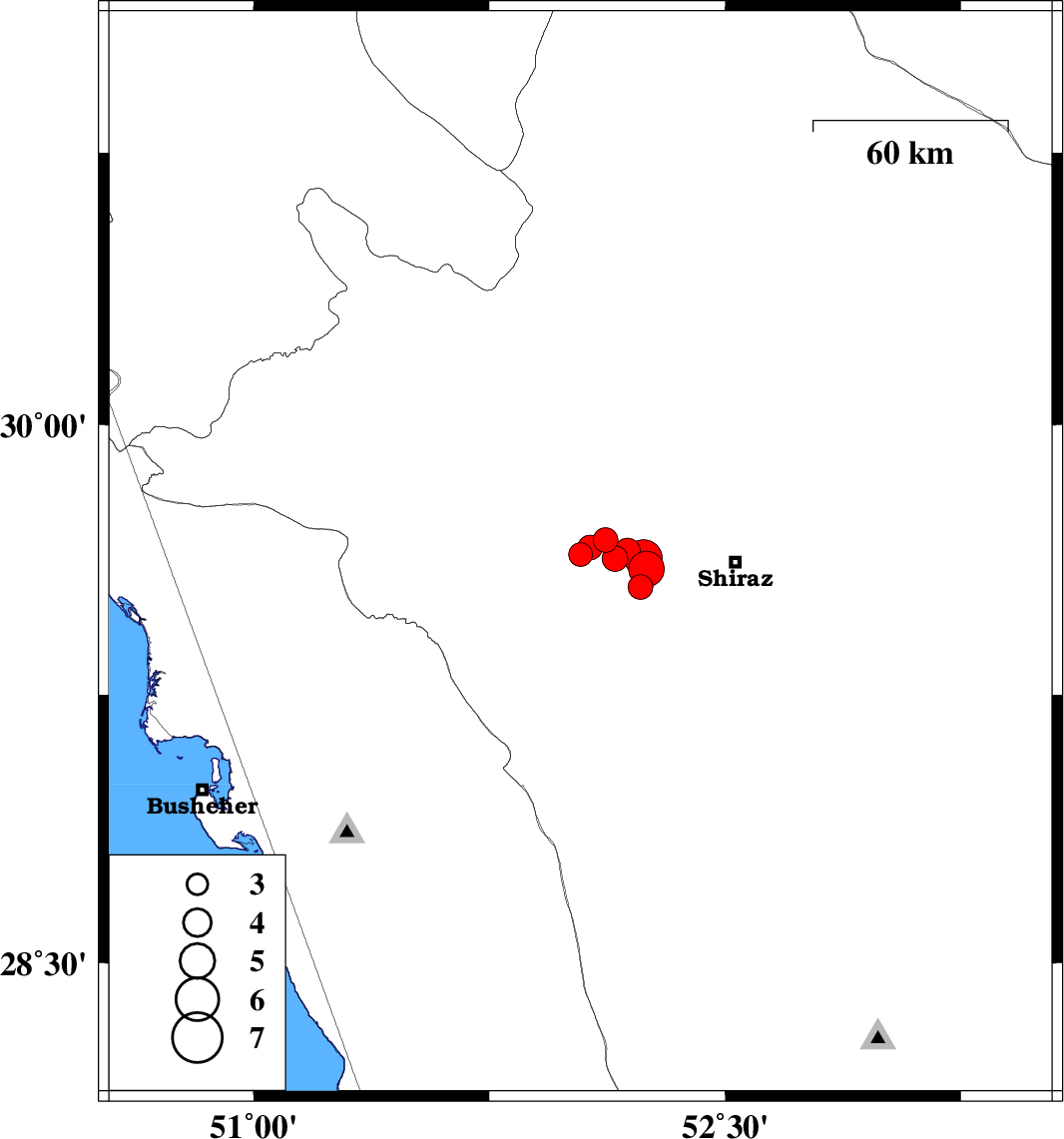 | 2020/01/28 | 15:24:34.0 | 18:54:34.0 | 29.6 | 52.25 | 10 | ML:5.1 | Fars Province, 27 km -West of Shiraz | ||