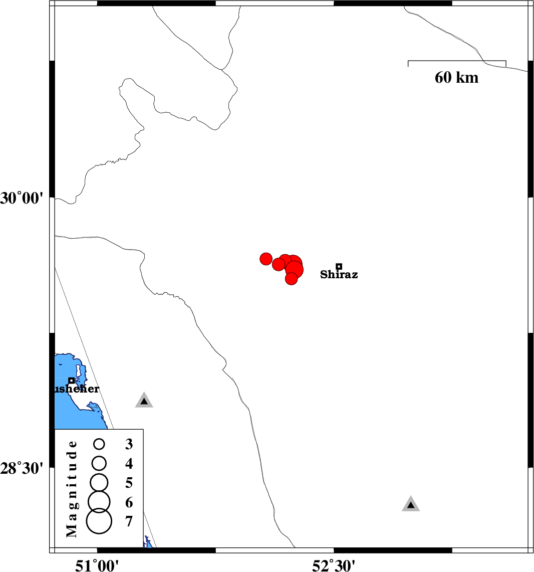 | 2020/01/27 | 14:33:08.3 | 18:03:08.3 | 29.65 | 52.19 | 10 | ML:3.6 | Fars Province, 33 km -West of Shiraz | ||