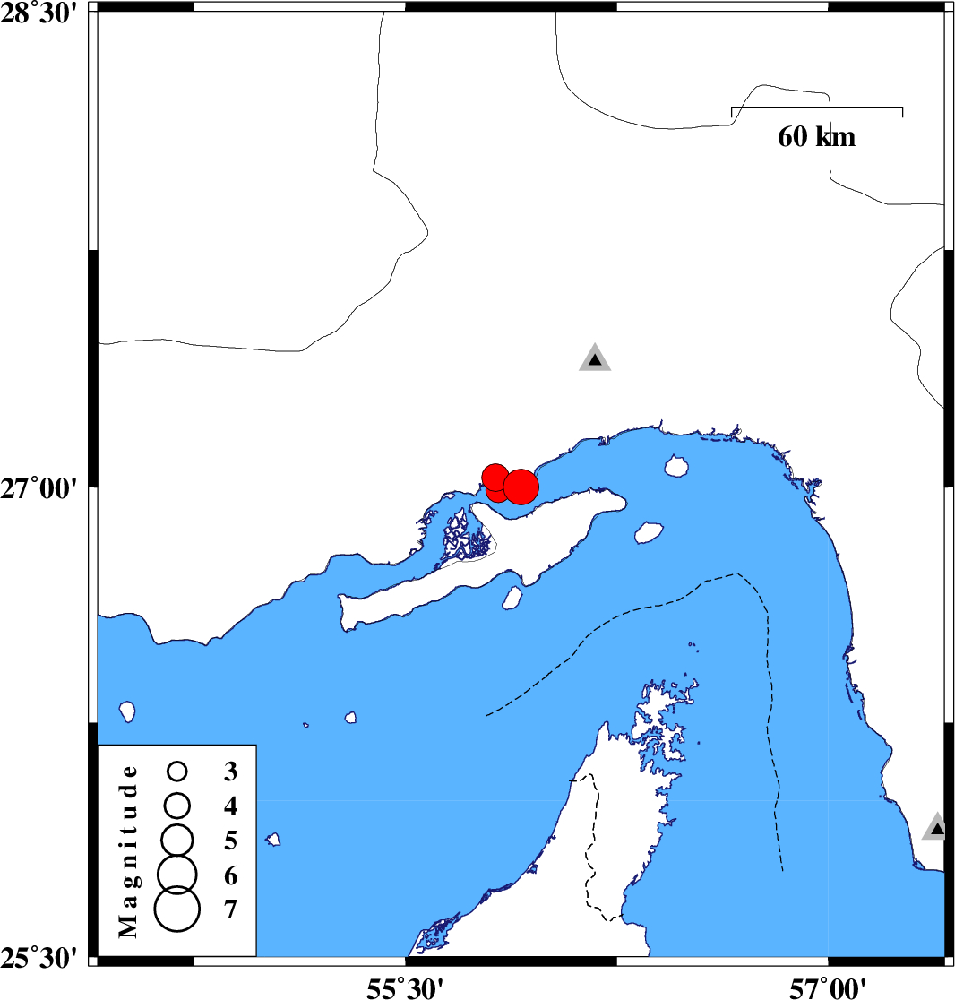 | 2020/02/16 | 12:30:46.8 | 16:00:46.8 | 27 | 55.91 | 15 | ML:5.7 | Persian Gulf, 36 km -West of Qeshm | ||