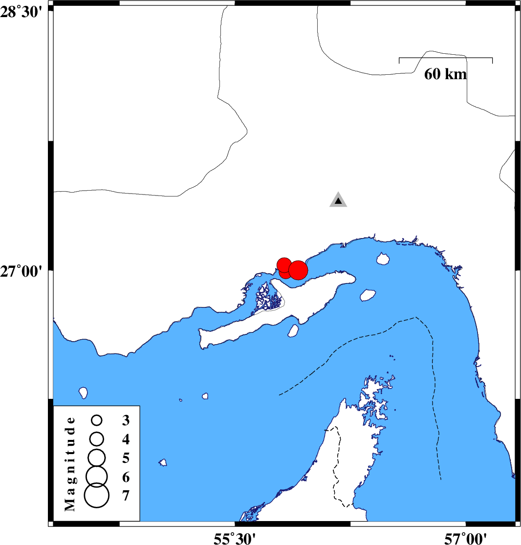 | 2020/02/16 | 12:30:46.8 | 16:00:46.8 | 27 | 55.91 | 15 | ML:5.7 | Persian Gulf, 36 km -West of Qeshm | ||