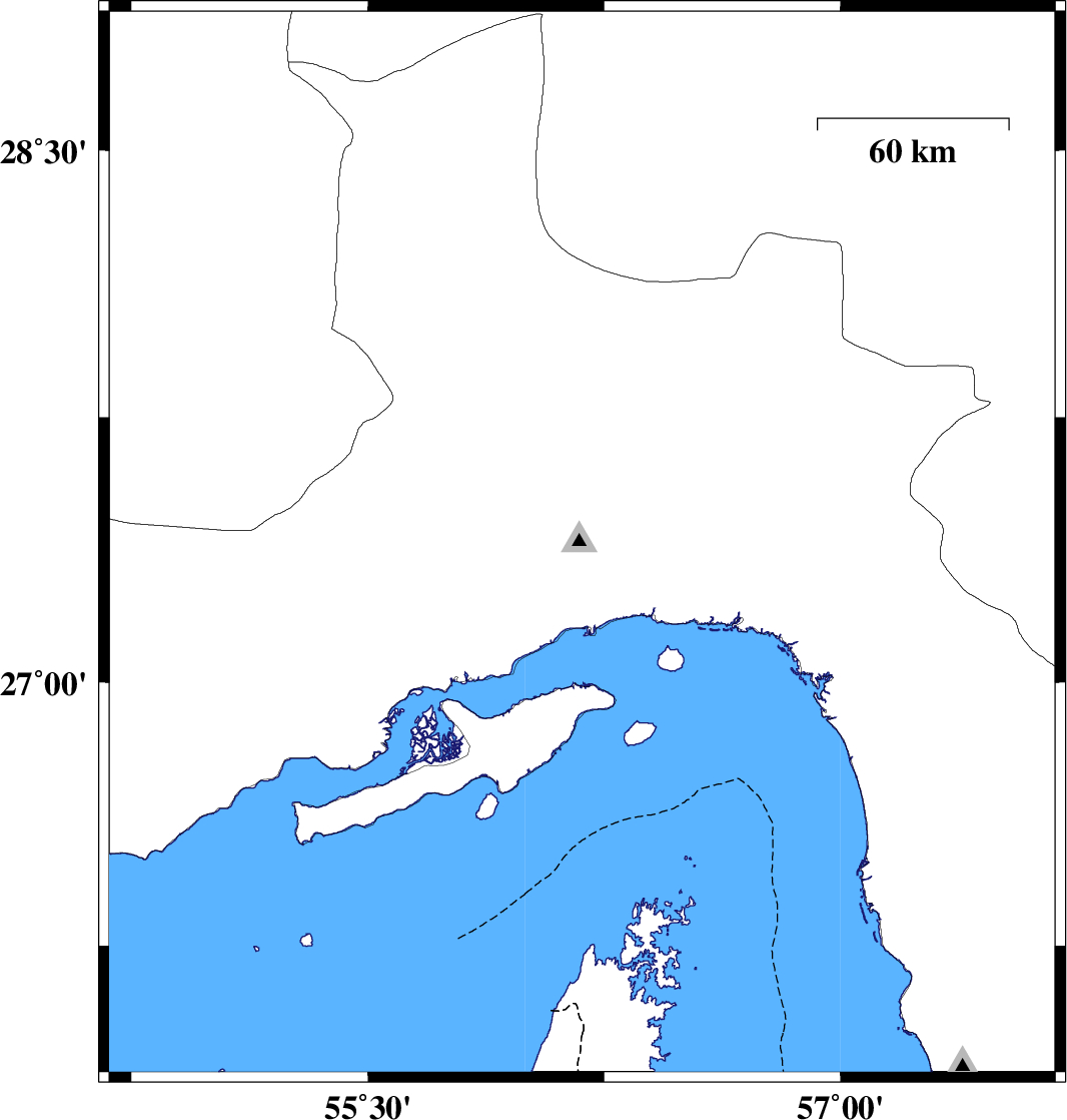 | 2020/01/27 | 00:56:51.5 | 04:26:51.5 | 28.15 | 56.77 | 10 | ML:3.2 | Hormozgan Province, 87 km South-East of Hajiabad | ||