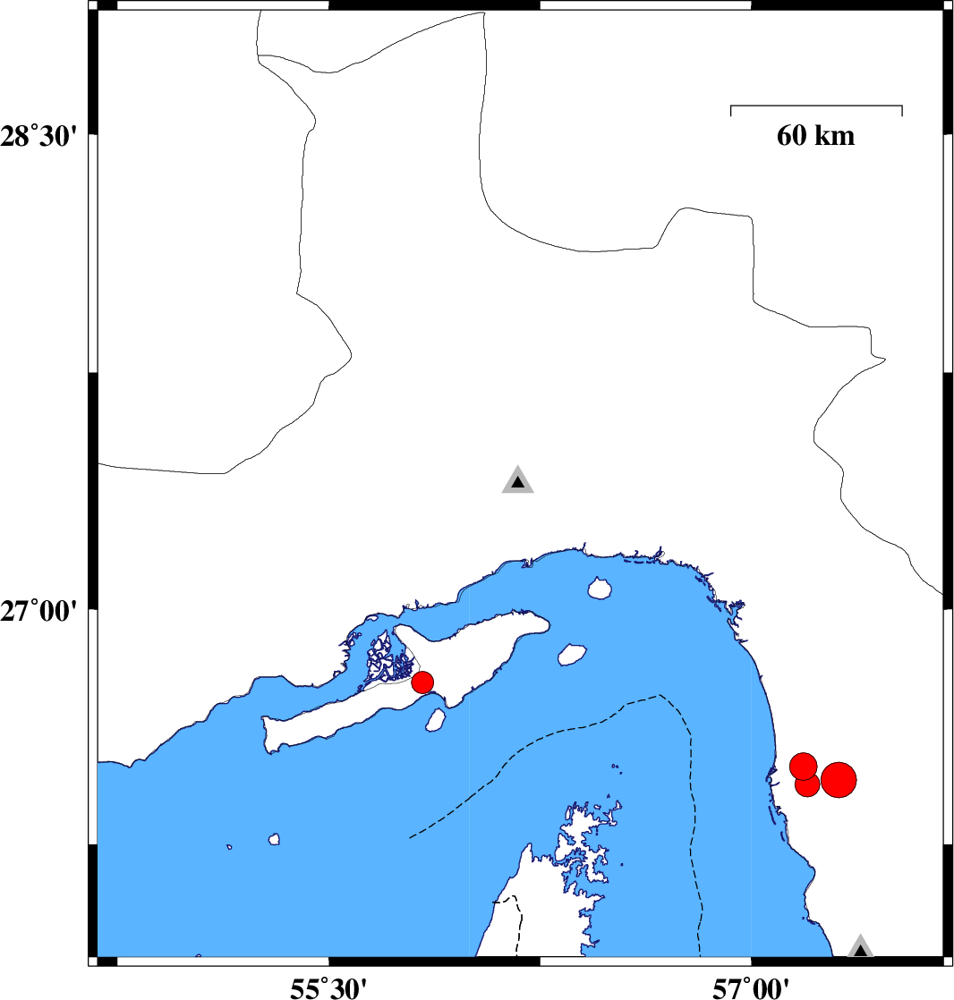 | 2020/02/16 | 12:30:46.8 | 16:00:46.8 | 27 | 55.91 | 15 | ML:5.7 | Persian Gulf, 36 km -West of Qeshm | ||