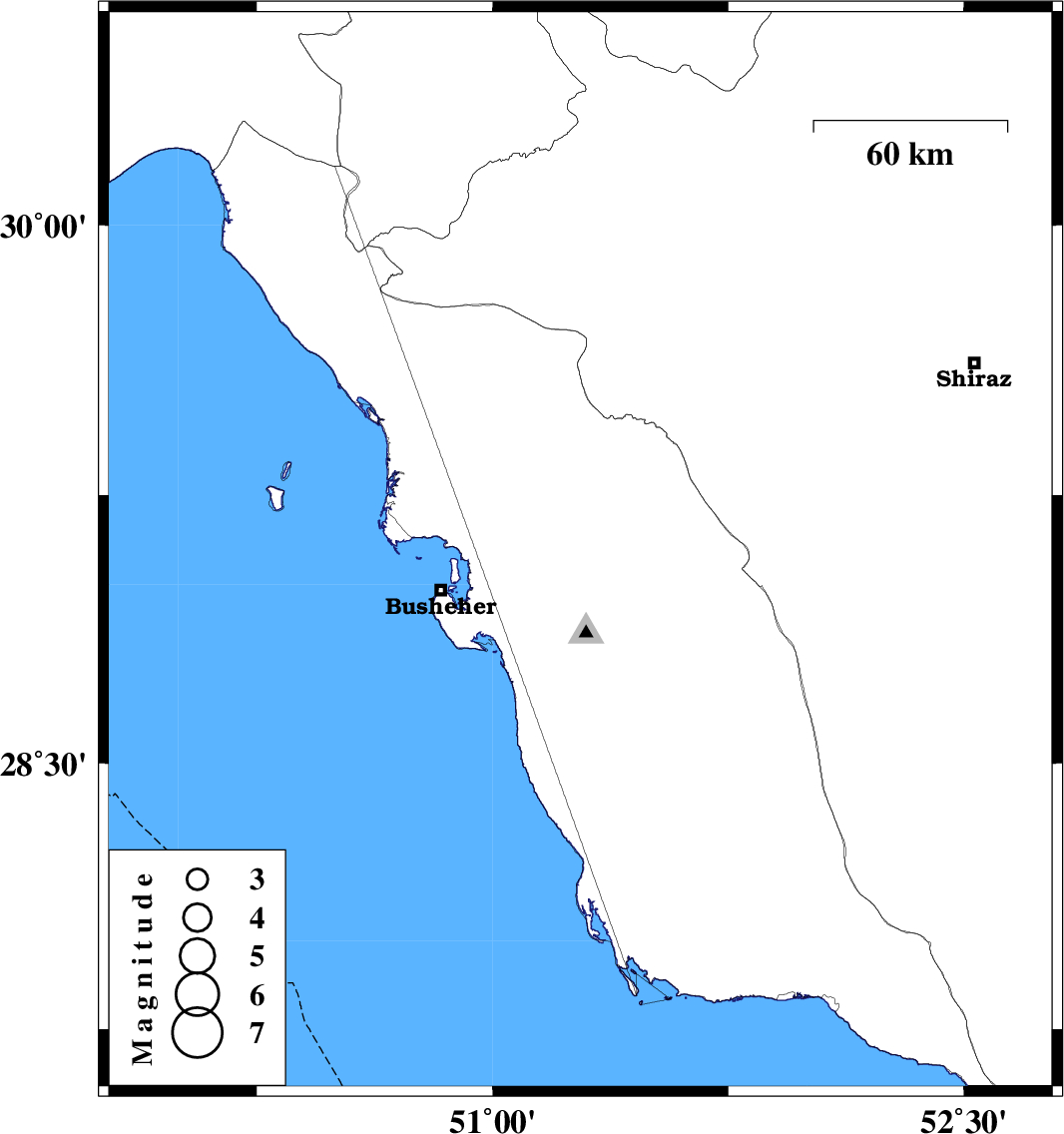 | 2020/02/26 | 22:11:16.8 | 01:41:16.8 | 29.09 | 51.28 | 10 | ML:3.8 | Bushehr Province, 24 km North of Ahram |