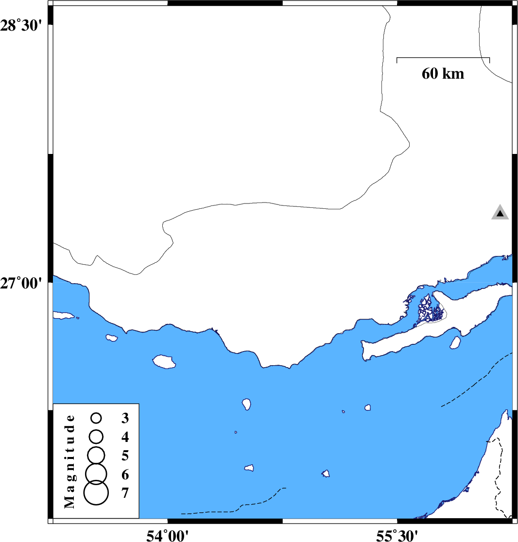 | 2020/03/03 | 11:31:27.4 | 15:01:27.4 | 27.11 | 54.75 | 25 | ML:4.4 | Hormozgan Province, 40 km -East of Bastak |