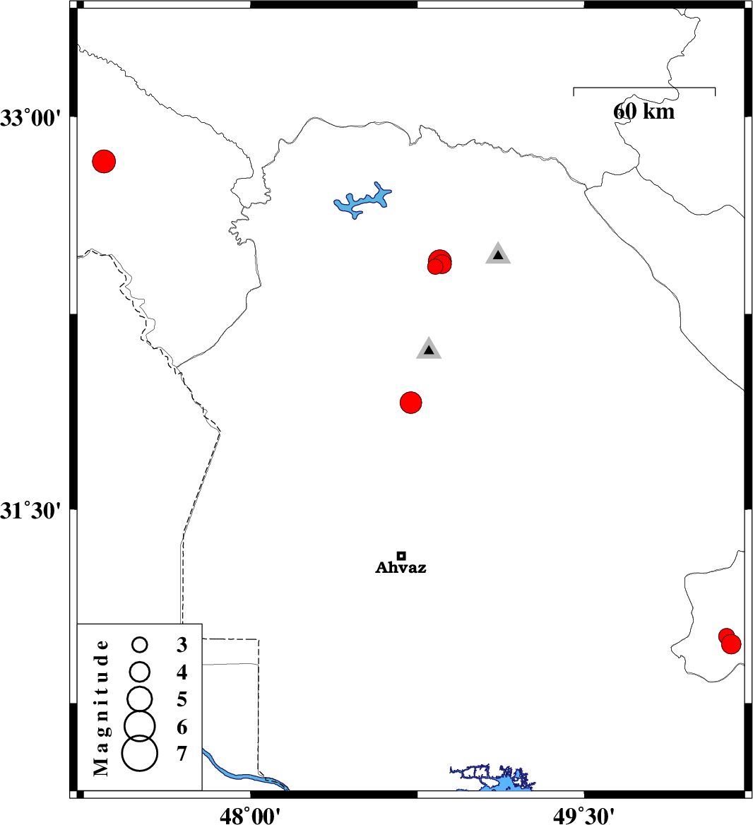 | 2020/03/13 | 16:25:50.8 | 19:55:50.8 | 32.43 | 48.83 | 10 | ML:3.1 | Khoozestan Province, 26 km -West of Lali | ||
