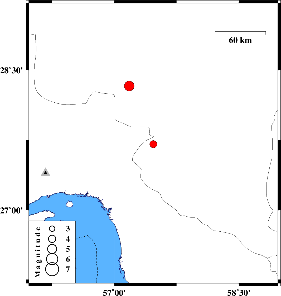 | 2020/03/27 | 06:40:44.6 | 11:10:44.6 | 28.33 | 57.18 | 15 | ML:5.3 | Kerman Province, 66 km North-West of Kahnuj |