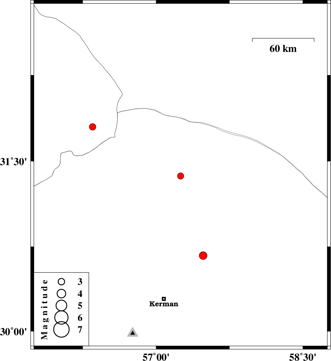 | 2020/03/29 | 03:45:11.8 | 08:15:11.8 | 30.67 | 57.48 | 10 | ML:3.7 | Kerman Province, 57 km North-East of Kerman |