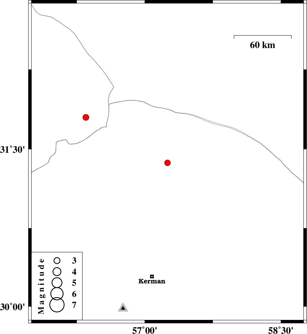 | 2020/04/10 | 11:59:22.2 | 16:29:22.2 | 31.37 | 57.25 | 10 | ML:2.9 | Kerman Province, 43 km North-East of Ravar | ||