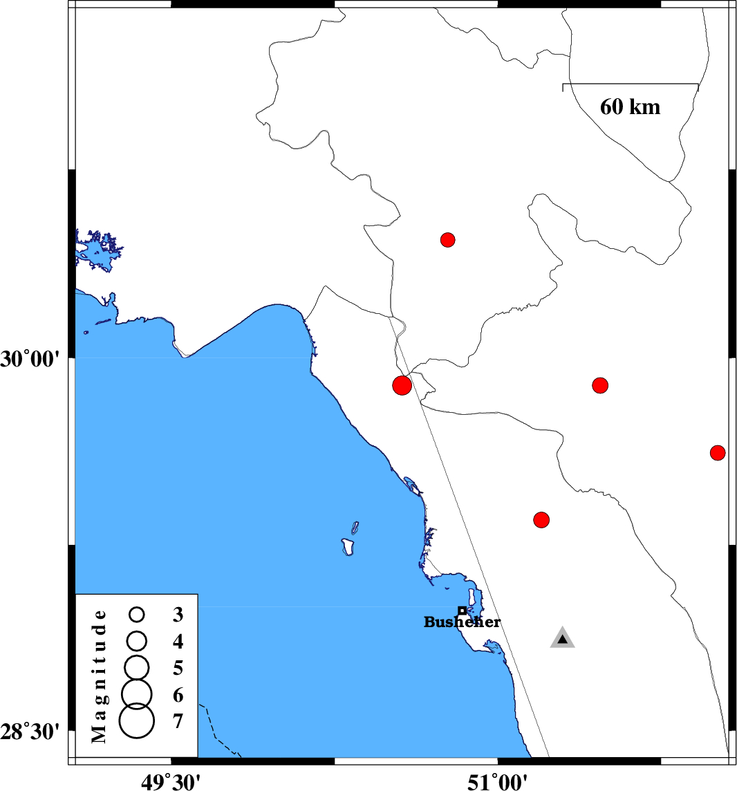 | 2020/04/28 | 04:49:16.2 | 09:19:16.2 | 29.89 | 50.56 | 10 | ML:3.9 | Khoozestan Province, 35 km North of Bandar-e genaveh | ||
