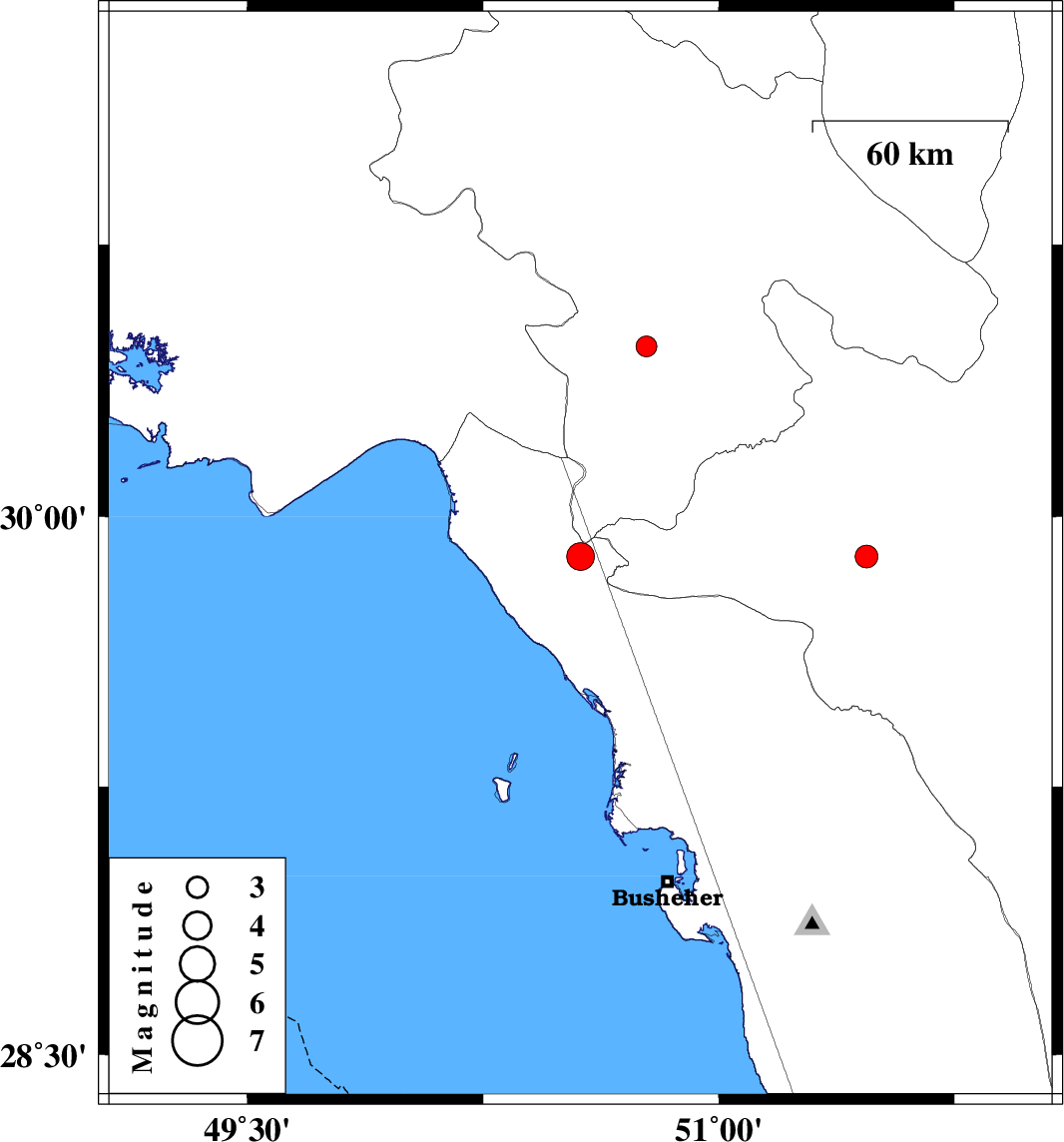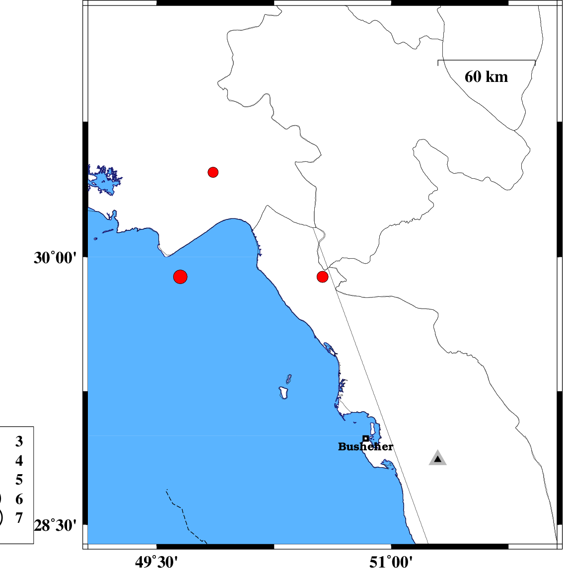 | 2020/04/28 | 04:49:16.2 | 09:19:16.2 | 29.89 | 50.56 | 10 | ML:3.9 | Khoozestan Province, 35 km North of Bandar-e genaveh | ||