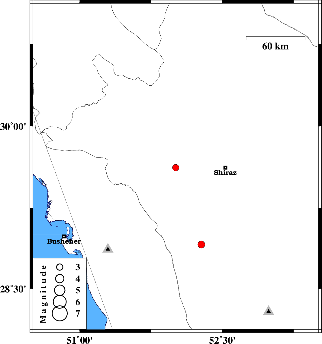 | 2020/04/20 | 17:44:06.7 | 22:14:06.7 | 29.62 | 52.01 | 12 | ML:3.1 | Fars Province, 34 km -East of Kazerun | ||