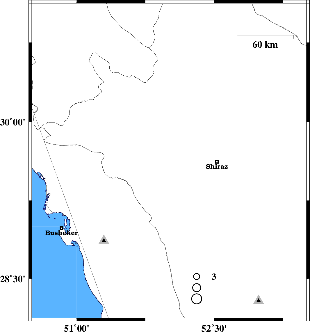 | 2020/04/18 | 03:14:57.0 | 07:44:57.0 | 28.91 | 52.28 | 10 | ML:3.4 | Fars Province, 19 km -East of Farashband |