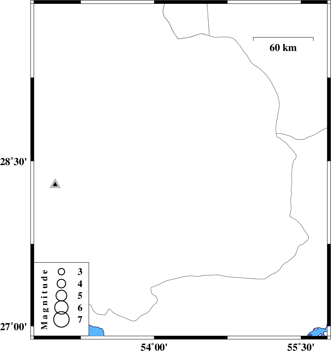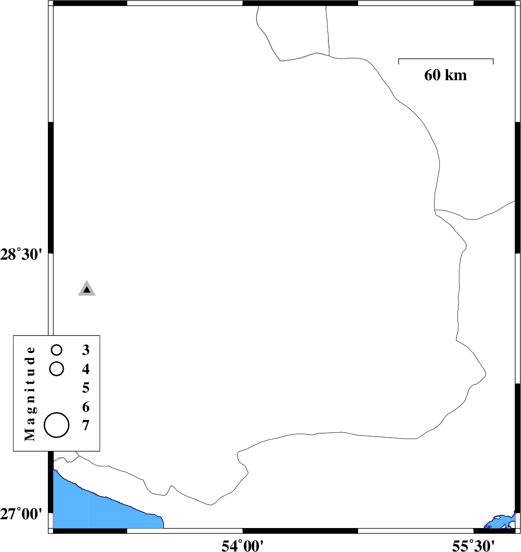 | 2020/05/09 | 03:08:08.1 | 07:38:08.1 | 28.41 | 54.27 | 10 | ML:3.4 | Fars Province, 46 km South-West of Darab |