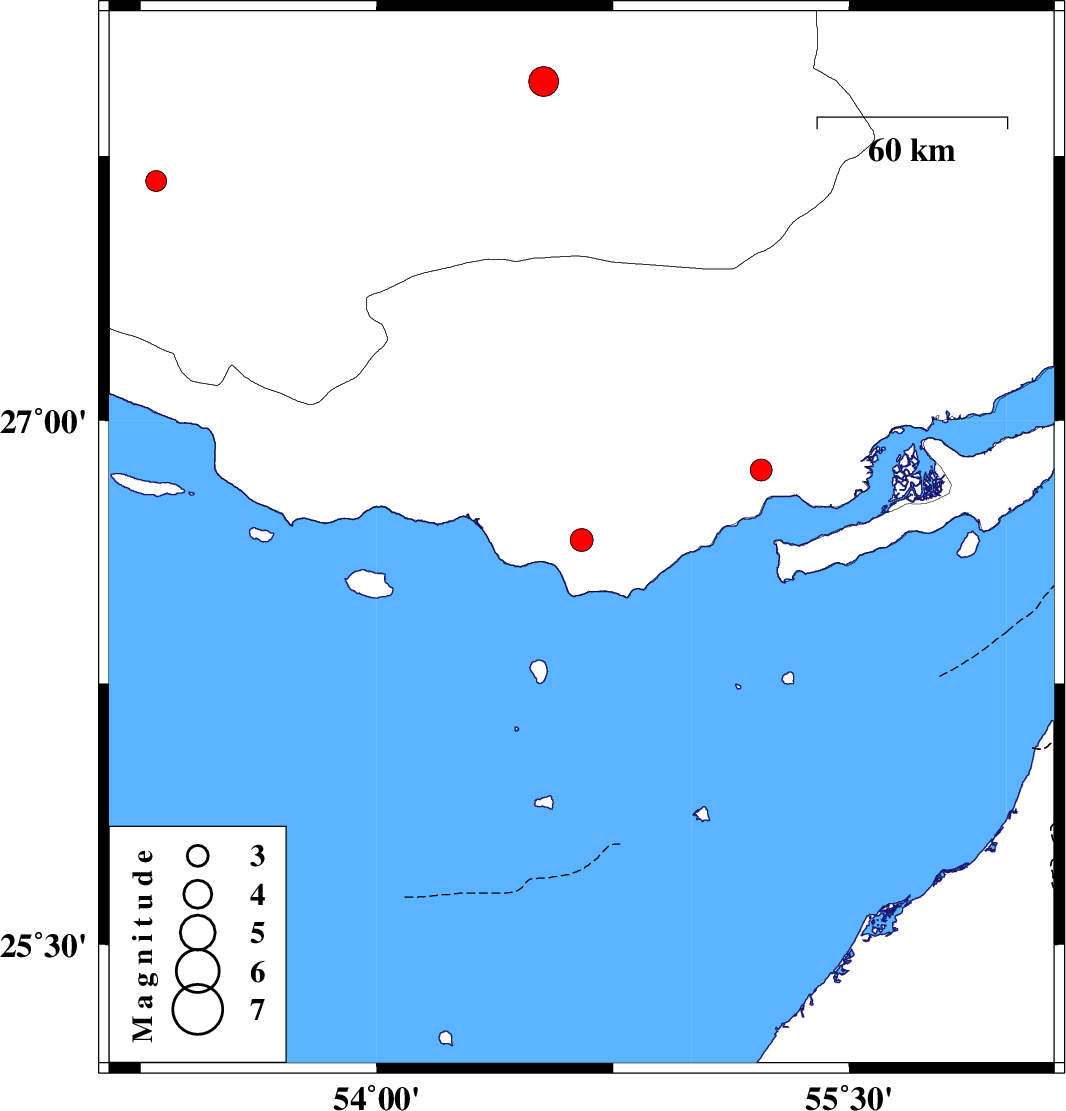 | 2020/05/11 | 02:06:49.0 | 06:36:49.0 | 27.68 | 53.3 | 10 | ML:3 | Fars Province, 41 km North-East of Lamerd | ||