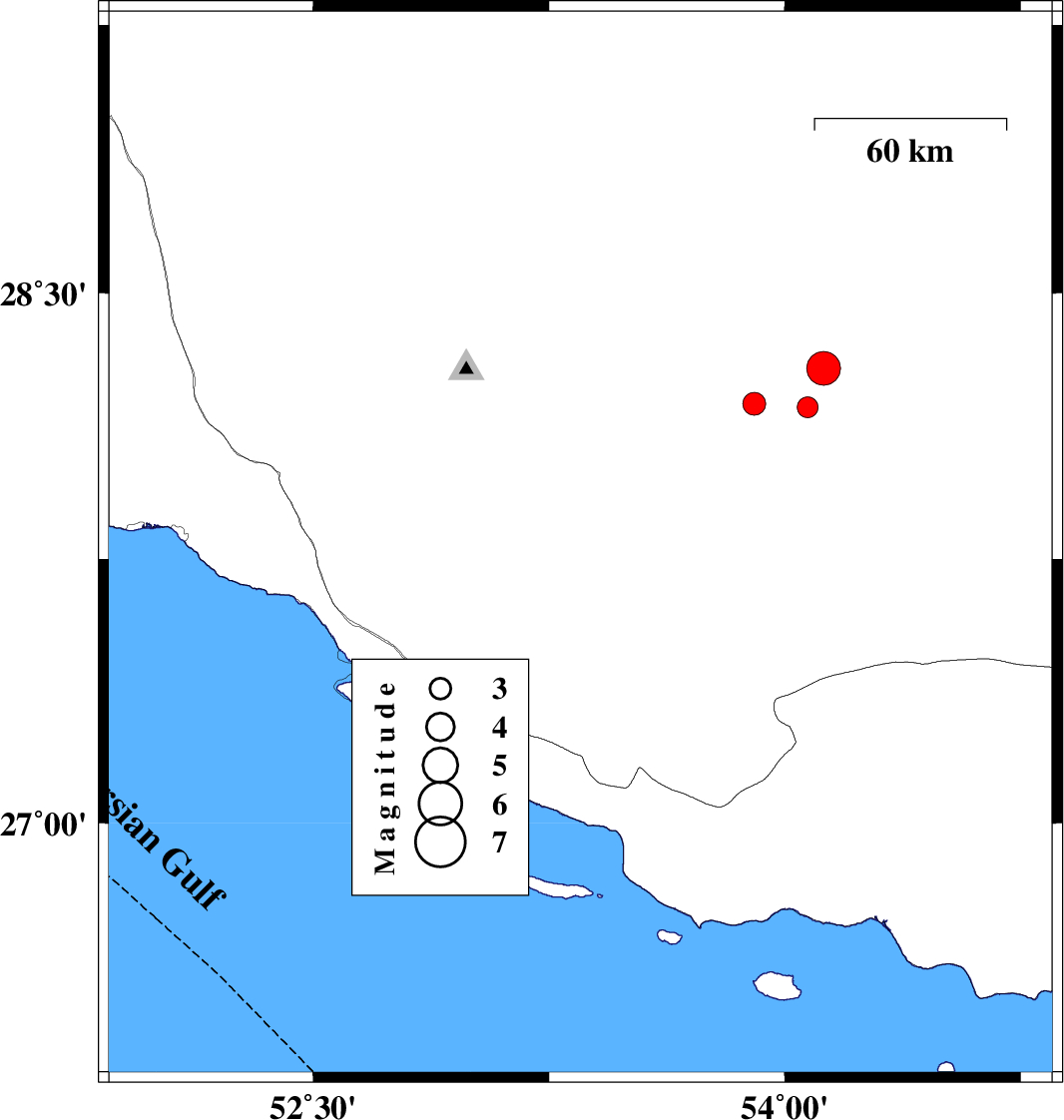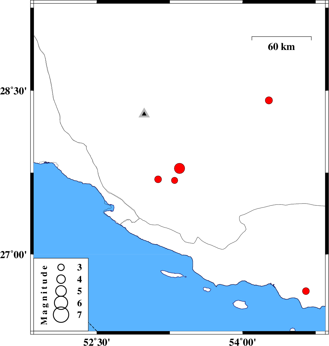| 2020/05/09 | 03:08:08.1 | 07:38:08.1 | 28.41 | 54.27 | 10 | ML:3.4 | Fars Province, 46 km South-West of Darab |